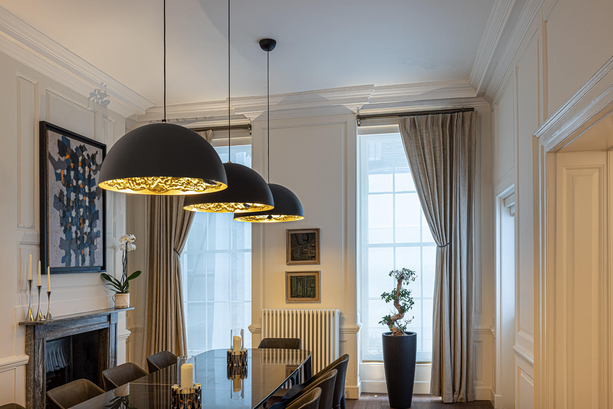 Die Stchu Moon 02 Pendelleuchte von Catellani & Smith entfaltet eine faszinierende Leuchtkraft, die Räume in eine warme, kunstvolle Atmosphäre taucht. Die außergewöhnliche Hängelampe vereint italienische Handwerkskunst mit innovativem Lichtdesign und setzt gekonnt Akzente im hochwertigen Wohn- oder Geschäftsambiente. Das goldene Innenleben reflektiert das Licht auf sanfte, doch intensive Weise und schafft dabei eine spannende Licht- und Schattenwirkung – wie ein abstrahiertes Mondrelief, das den Anspruch an avantgardistisches Design und erlesene Materialien widerspiegelt. Die Stchu Moon 02 Pendelleuchte eignet sich zur Inszenierung großzügiger Wohnbereiche, exklusiver Esszimmer oder repräsentativer Empfangszonen und fungiert dabei als atmosphärisches Highlight, das sowohl solo als auch im Ensemble eine unverwechselbare Ausstrahlung besitzt. Gefertigt wird die Pendelleuchte aus Aluminium, das außen mit einer eleganten, matten Oberfläche überzeugt, während das Innere wahlweise in Blattgold, Blattsilber oder Blattkupfer ausgeführt wird. Mit einem Durchmesser von 40 Zentimetern und einer stufenlos verstellbaren Aufhängung passt sich die Stchu Moon 02 Pendelleuchte unterschiedlichen architektonischen Gegebenheiten an. Das Design stammt von Enzo Catellani, der mit der charakteristischen, handgearbeiteten Formensprache zeitgenössische Eleganz neu interpretiert.Stchu Moon 02 Pendelleuchte – Exquisite Lichtwirkung und erlesene Materialien