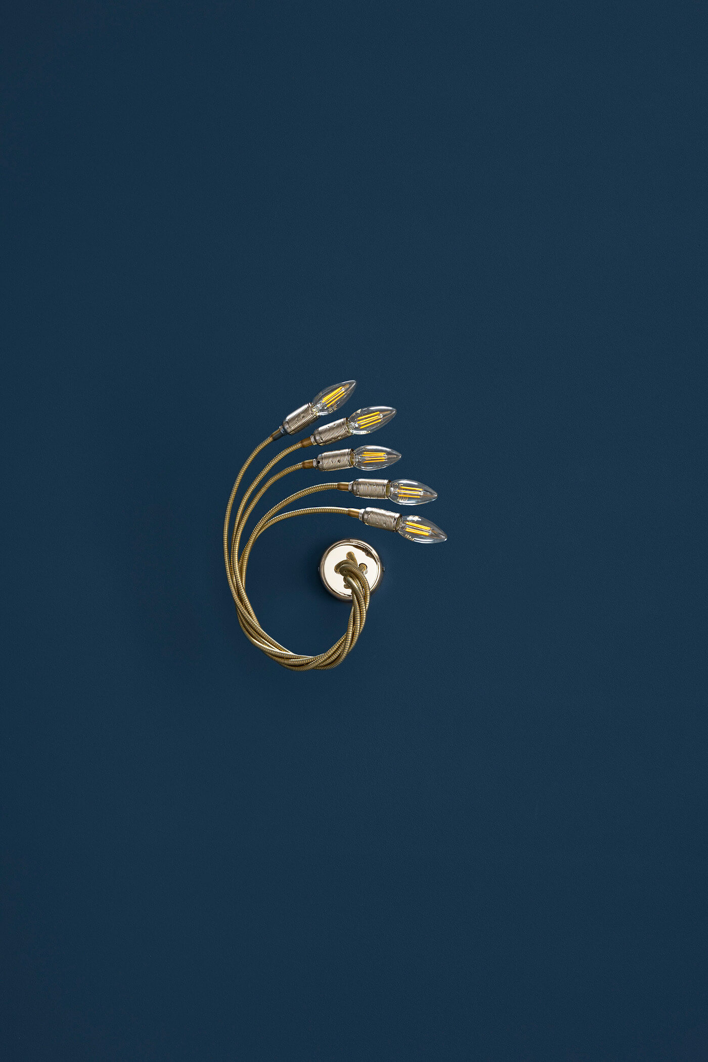 Die Catellani & Smith Turciù 5 Wandleuchte entfaltet ihre besondere Wirkung durch ihren kunstvollen Charakter und die beeindruckende Verbindung von Ästhetik und Innovation. Die organisch geschwungenen Arme wirken wie fließende Lichtadern, die jeden Raum auf dezente, aber eindrucksvolle Weise durchdringen. Mit ihrer skulpturalen Anmutung wird die Wandleuchte zu einem stimmungsvollen Highlight, das sowohl moderne als auch klassische Interieurs subtil bereichert. Licht und Schatten treten in ein faszinierendes Spiel, das Atmosphäre schafft, ohne sich aufzudrängen. Die exklusive Materialität und die hochwertige Verarbeitung unterstreichen den kompromisslosen Designanspruch, der Catellani & Smith auszeichnet. Dabei vereint die Leuchte Funktion mit einer klaren Formensprache, die Räume unaufdringlich inszeniert. Die Turciù 5 Wandleuchte wird in Italien gefertigt und überzeugt mit fünf biegsamen Armen aus flexiblen Messingrohren, die individuell ausgerichtet werden können. Die E14-Fassungen eröffnen vielfältige Lichtinszenierungen. Der Korpus ist wahlweise in Messing natur oder Nickel erhältlich. Das Objektmaß beträgt ca. 80 Zentimeter, wobei jede Leuchte durch Handarbeit ein Unikat ist. Für das außergewöhnliche Design zeichnet Enzo Catellani persönlich verantwortlich.Turciù 5 Wandleuchte – Handwerkliche Perfektion und zeitlose Eleganz