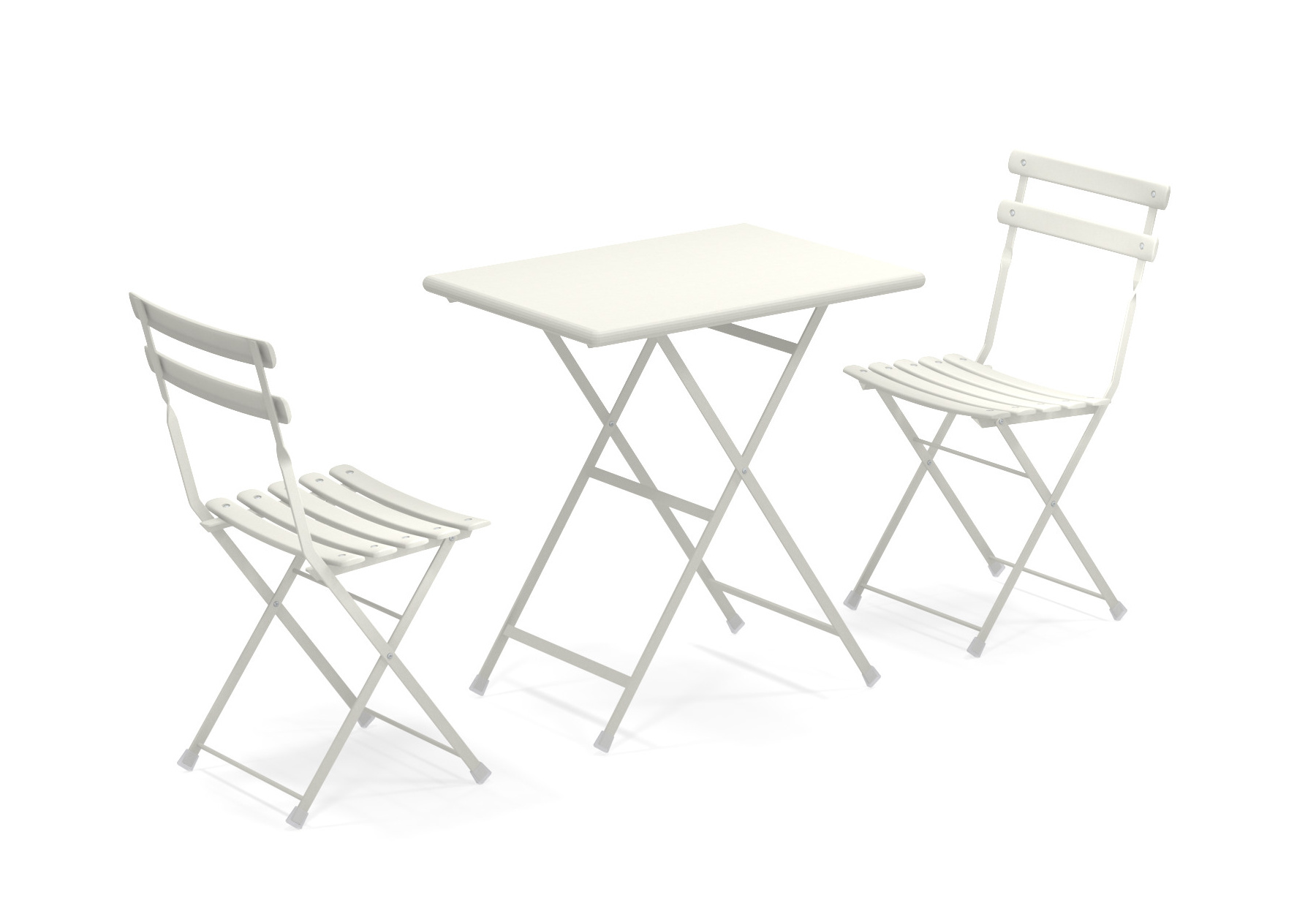 Das Emu Arc en Ciel Gartenmöbel-Set entfaltet im Außenbereich eine gleichermaßen leichte wie raffinierte Atmosphäre. Seine zurückhaltend-elegante Linienführung, kombiniert mit italienischem Designanspruch, sorgt für einen stilvollen Akzent auf Terrasse, Balkon oder in repräsentativen Gartenanlagen. Die feine Abstimmung von Farben, Formen und Materialien lässt eine perfekte Balance entstehen: Als verbindendes Element zwischen Natur und Architektur fügt sich das Ensemble mühelos in verschiedene Stilwelten ein. Ob als exklusiver Arbeitsplatz im Freien oder entspannter Ort gemeinsamer Stunden – das Arc en Ciel Gartenmöbel-Set steht für ein luxuriöses Outdoor-Erlebnis, das über bloße Funktionalität hinausgeht. Jedes Detail manifestiert die Liebe zur Gestaltung und den Anspruch an langlebige Qualität, wie er nur durch die Expertise renommierter Manufakturen erreicht werden kann. Das Set umfasst einen klappbaren Tisch mit den Maßen 71 x 50 cm sowie zwei ebenfalls klappbare Stühle aus robustem, pulverbeschichtetem Stahl. Zahlreiche Farbvarianten sorgen für stilistische Vielfalt, während die wetterfesten Materialien Langlebigkeit und Pflegeleichtigkeit gewährleisten. Benannt nach dem französischen Begriff für „Regenbogen“, entwarf das Studio Emu dieses Set als flexibles Designmöbel für den anspruchsvollen Außenbereich.Arc en Ciel Gartenmöbel-Set – Hochwertige Materialien und vielfältige Varianten