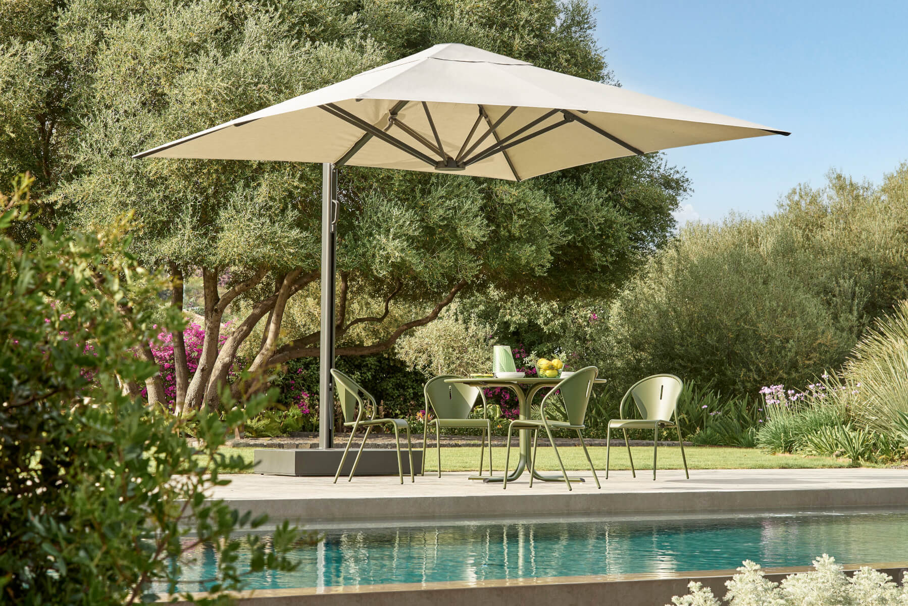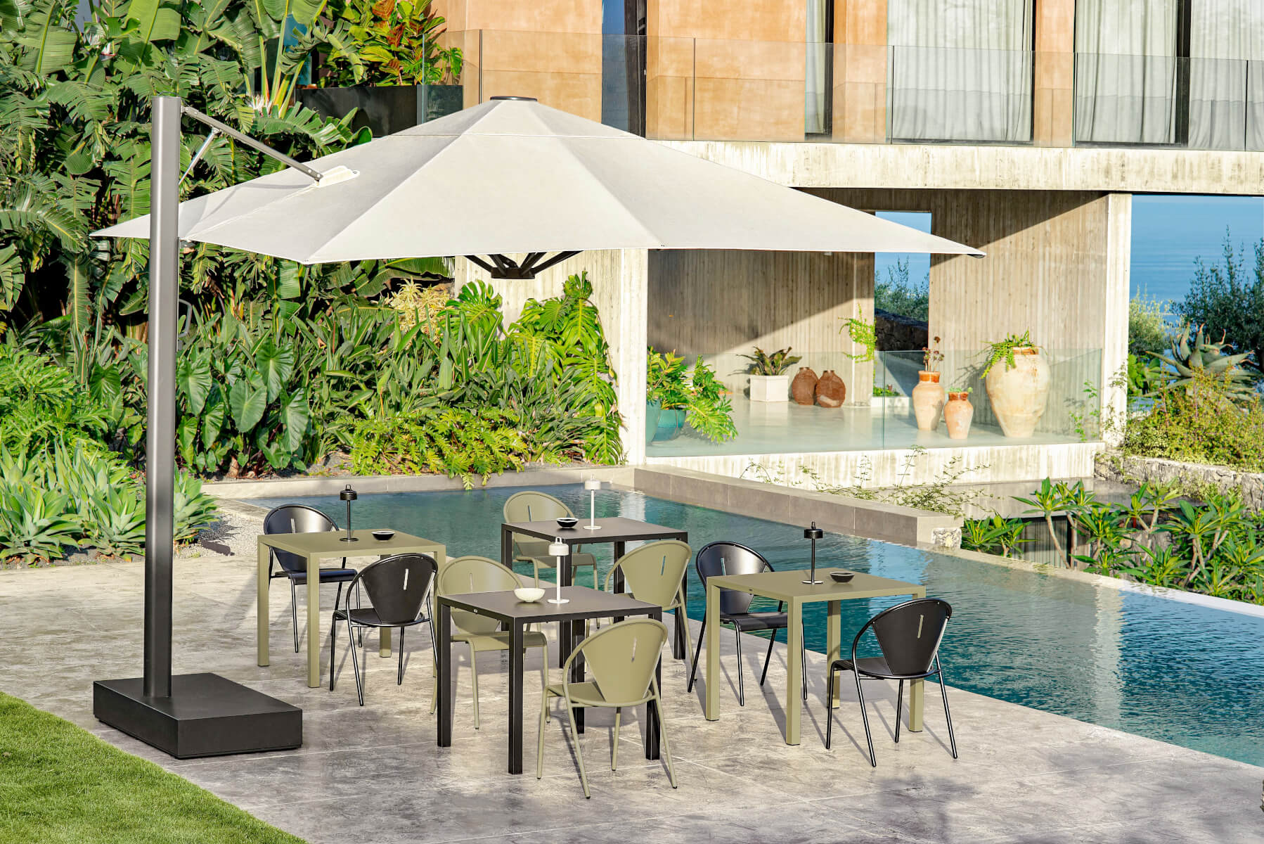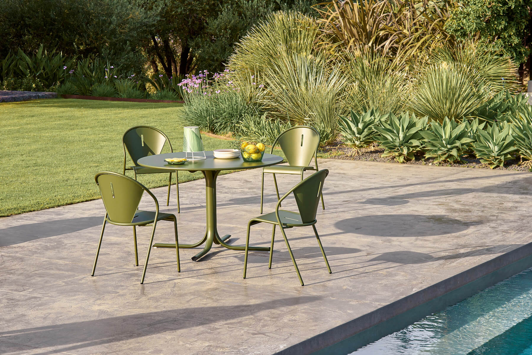 Gefertigt wird der Code Gartenstuhl aus hochwertigem, wetterfest pulverbeschichtetem Aluminium, das gleichermaßen Leichtigkeit und Robustheit garantiert. Das präzise ausgeführte Streben-Design der Sitzfläche sorgt für optimale Belüftung und angenehmen Sitzkomfort, während die stapelbare Ausführung größtmögliche Flexibilität bietet. Erhältlich ist der Stuhl in verschiedenen zurückhaltenden Farbtönen, die perfekt mit zeitgenössischen Outdoor-Konzepten harmonieren. Entworfen wurde der Code Gartenstuhl von dem renommierten Designer Christophe Pillet, der für seine reduzierte, zeitlose Gestaltungssprache bekannt ist.