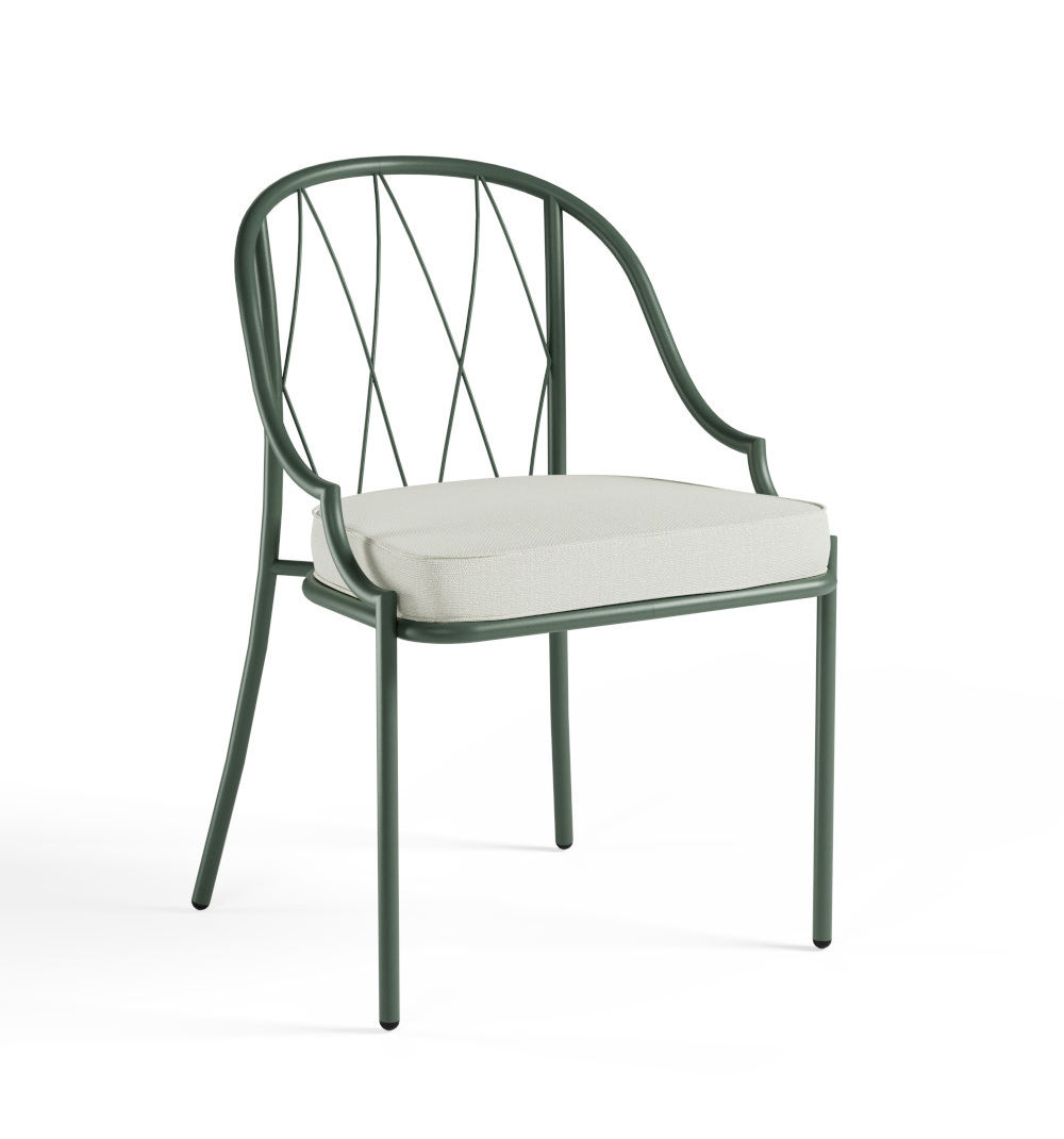 Der Como Gartenstuhl misst in Breite, Tiefe und Höhe jeweils 54, 59 und 87 Zentimeter und besitzt eine Sitzhöhe von 46 Zentimetern. Gefertigt aus pulverbeschichtetem, wetterfestem Stahl, überzeugt das Modell durch Robustheit und Langlebigkeit. Der renommierte Designer Angeletti Ruzza steht hinter der klaren Formgestaltung, angeboten wird der Stuhl in einer Vielzahl von Farben und Ausführungen, auch als stapelbare Variante zur flexiblen Nutzung.