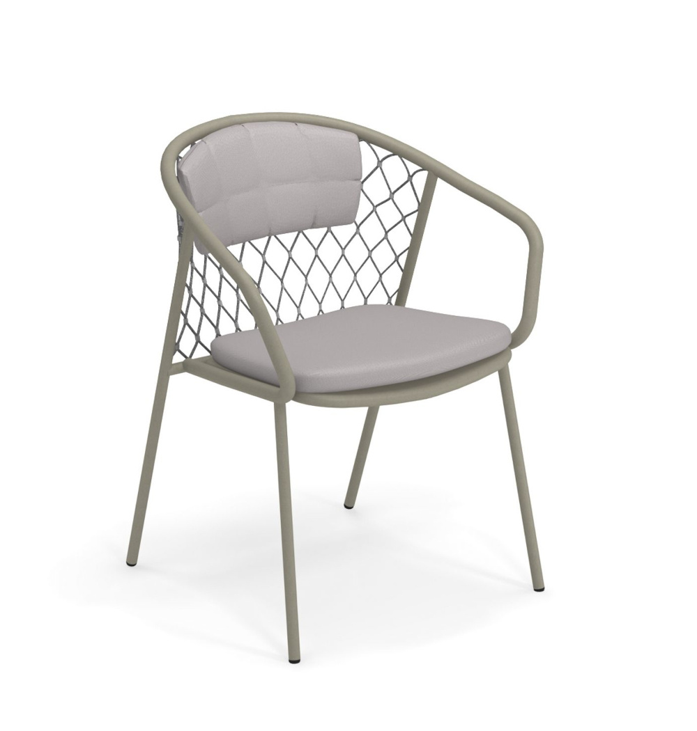 Inspiriert von filigranen Ballonmotiven, entwarf der Designer Patrick Norguet das Modell für das italienische Label Emu. In präziser Handarbeit verschmelzen ein eloxiertes Aluminiumgestell und Sitzschalen aus hochwertigem, UV-beständigem Polyolefin-Seilgeflecht zu außergewöhnlicher Stabilität und Komfort. Der Nef Armlehnstuhl ist in verschiedenen dezenten Farben und mit oder ohne Kissen erhältlich. Mit Maßen von ca. 77 cm Höhe, 61 cm Breite und 65 cm Tiefe fügt er sich gekonnt in verschiedene Raumkonzepte ein.