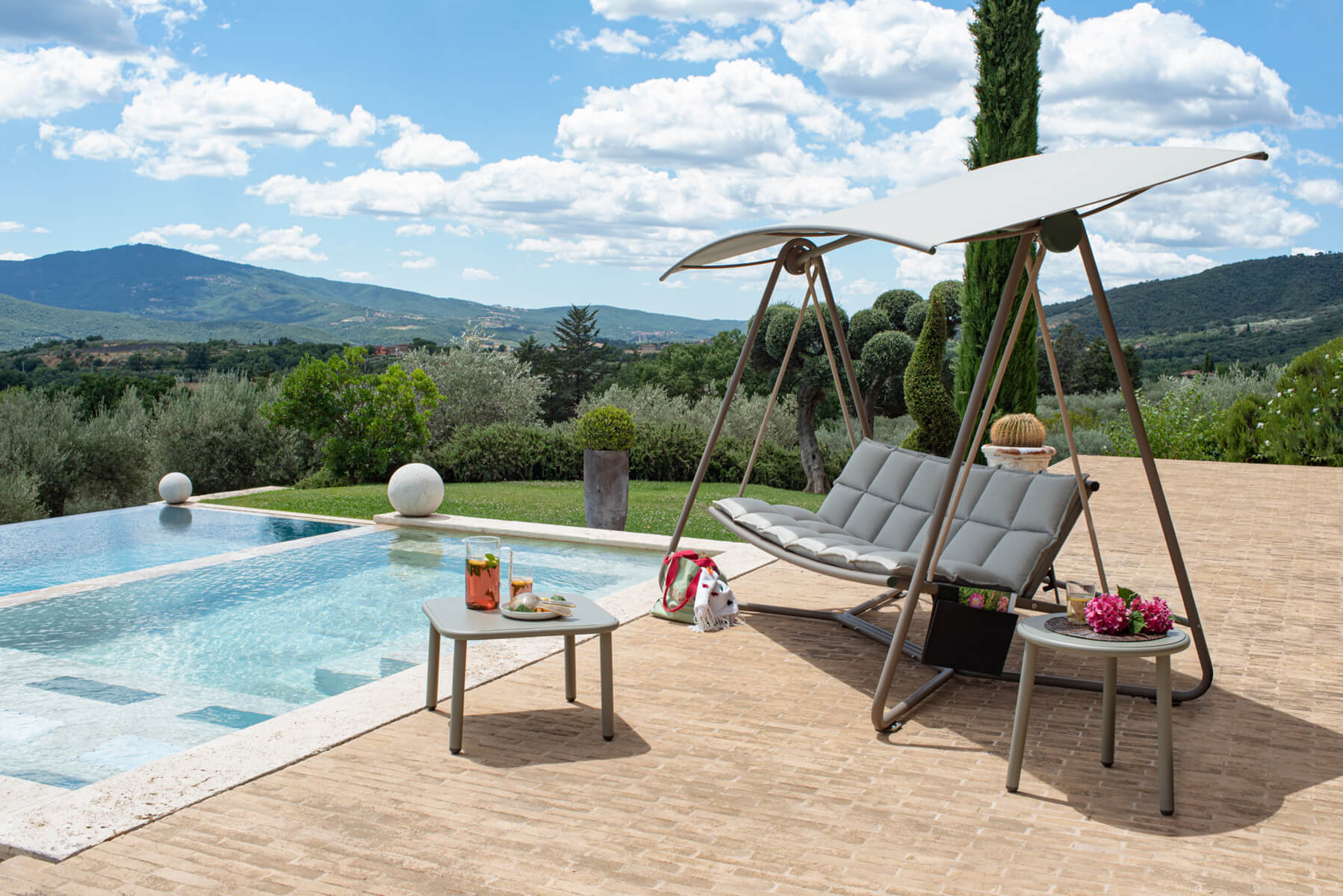 Mit dem Emu Reel Schaukelsofa wird Außenbereich zu einer harmonischen Oase, in der zeitloses Design und exzellente Handwerkskunst stilvoll verschmelzen. Die klaren Linien der Konstruktion treffen auf ausgewogene Proportionen, die jeden Raum mit Leichtigkeit und Eleganz erfüllen. Das Zusammenspiel aus filigranem Gestell und großzügiger Sitzfläche unterstreicht nicht nur den gehobenen Anspruch an Ästhetik, sondern eröffnet auch neue Dimensionen des Komforts im täglichen Gebrauch. Das Reel Schaukelsofa lädt ein, Momente der Ruhe auf höchstem Niveau zu genießen. Die subtile Bewegung der Schaukel bietet ein Gefühl entspannter Geborgenheit und verleiht Gärten, Terrassen oder stilvoll angelegten Loungebereichen eine exklusive, einladende Aura. Das Emu Reel Schaukelsofa ist aus langlebigem, pulverbeschichtetem Aluminium gefertigt und zeigt sich in unterschiedlichen, dezenten Farbtönen, die den individuellen Charakter unterstreichen. Das Design stammt von Patricia Urquiola, einer international renommierten Designerin. Die Abmessungen betragen etwa 172 cm in der Breite, 93 cm in der Tiefe und 92 cm in der Höhe – eine großzügige Fläche für zwei Personen. Optional verfügbare Kissenvarianten ergänzen das stabile Gestell um zusätzlichen Komfort und vielfältige Gestaltungsmöglichkeiten.Reel Schaukelsofa – Hochwertige Materialien und vielfältige Varianten