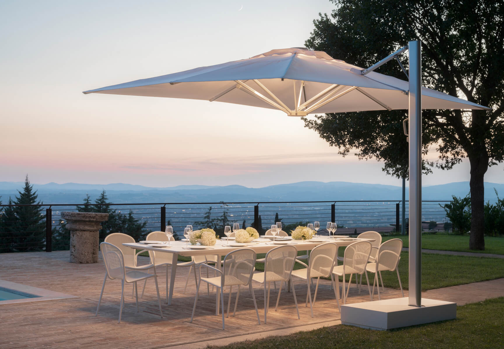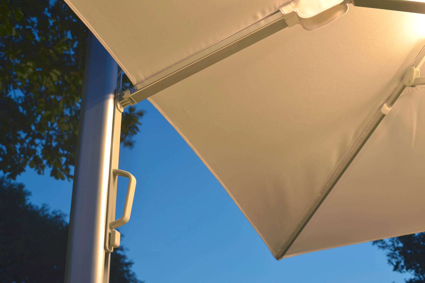| Details: | Der Shade Pro Sonnenschirm hat eine Aluminiumstruktur und eine Acrylgewebehülle. Das Öffnen und Schließen des Sonnenschirm wird durch eine Gasfeder erleichtert, die durch Einwirken auf ein geeignetes Hebelsystem die zum Öffnen und Schließen erforderliche Kraft verringert. |