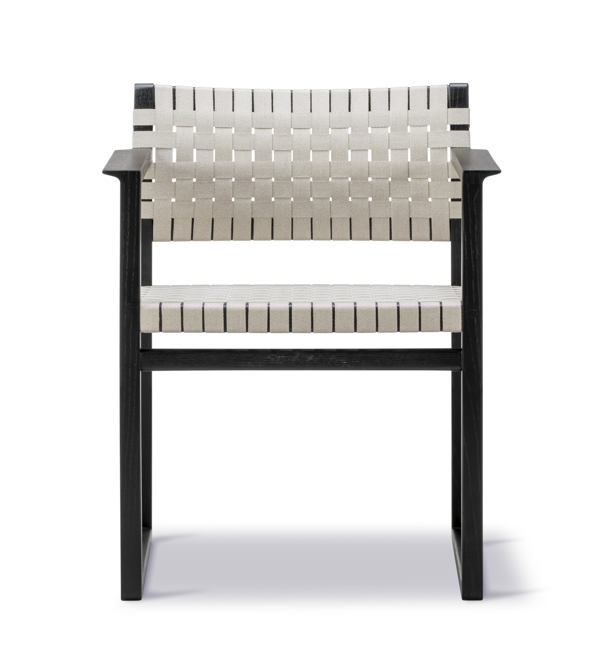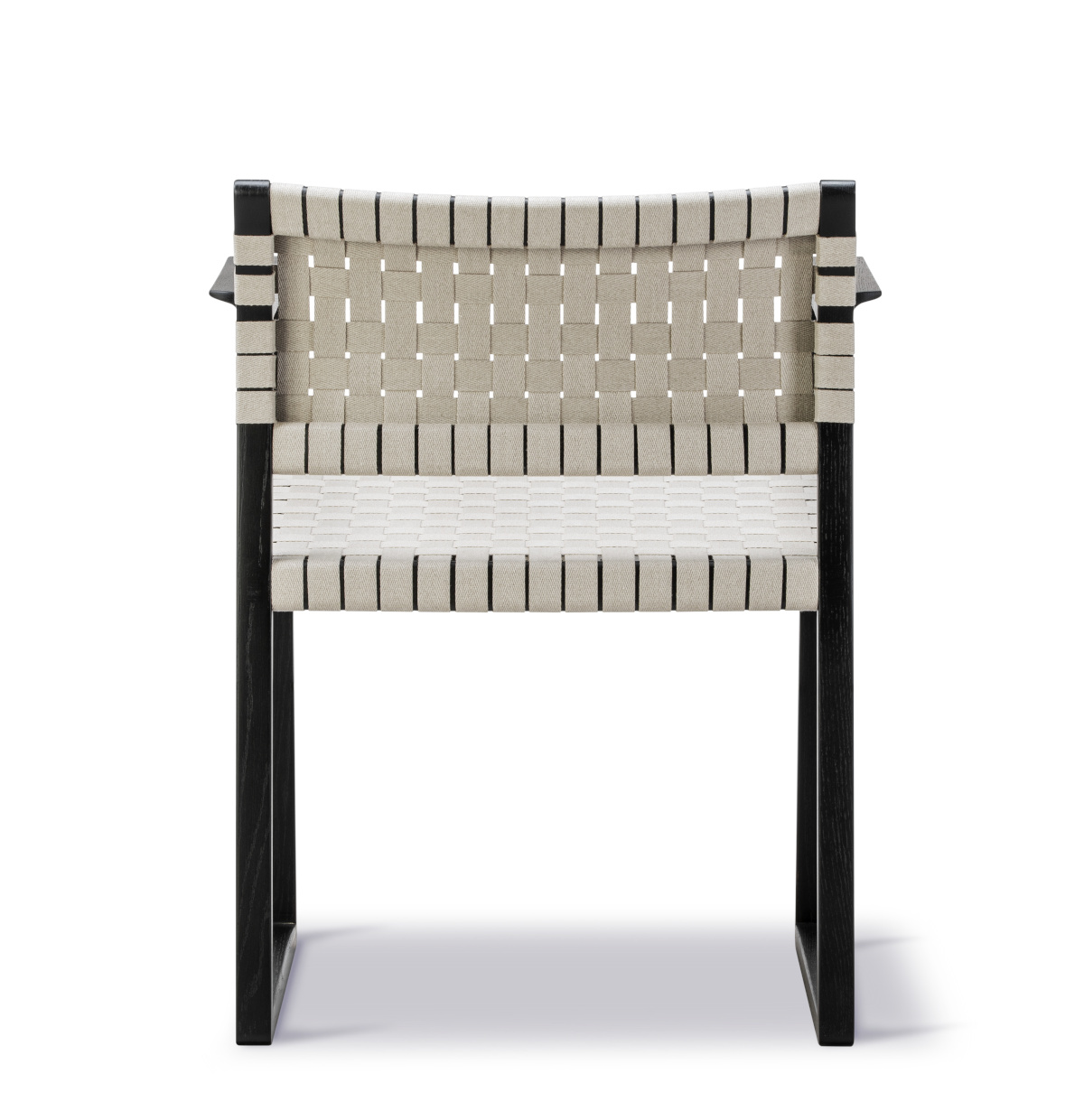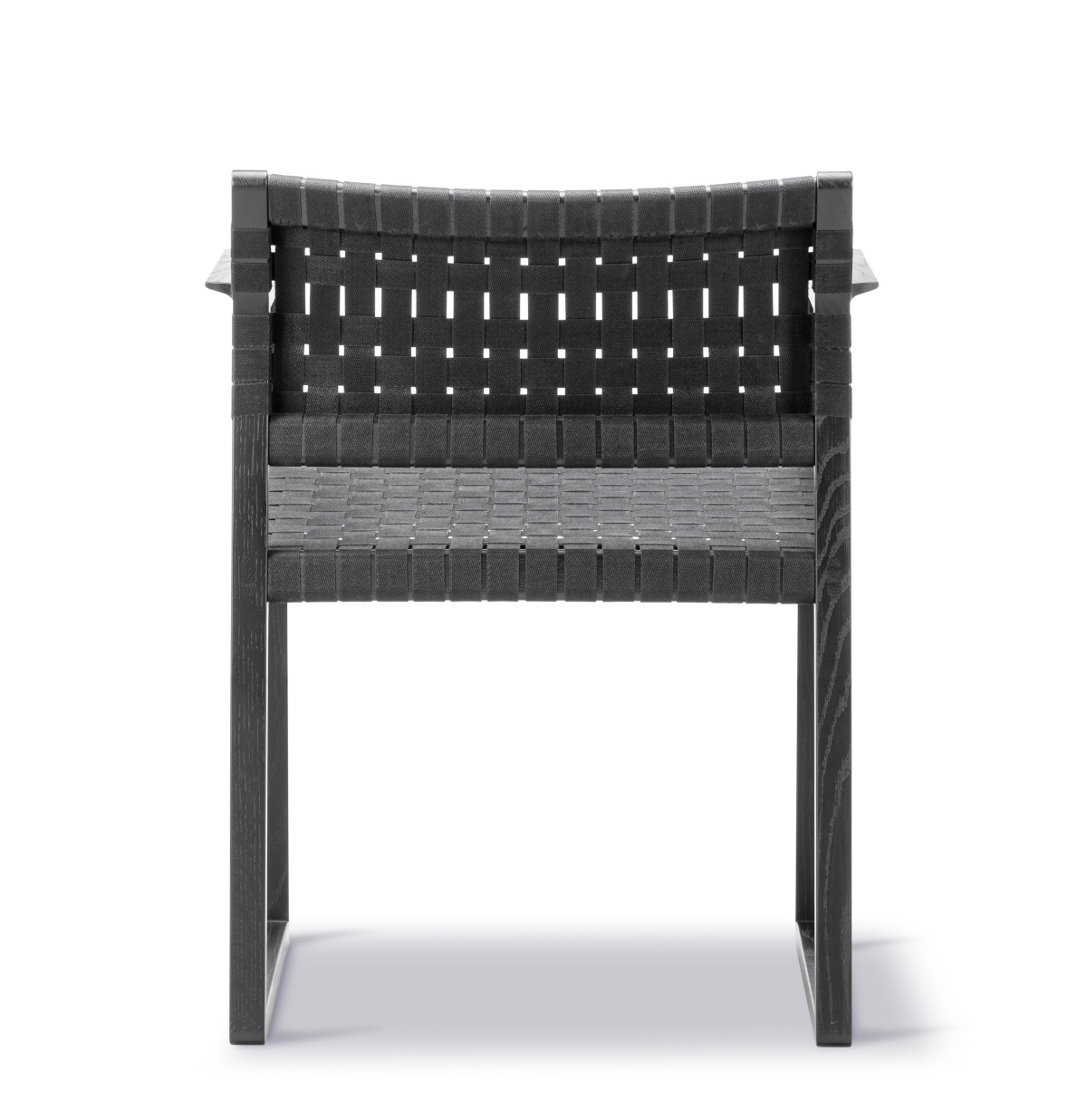 Fredericia - BM62 Armlehnstuhl mit Leinengurt, eiche schwarz lackiert / leinengurt schwarz