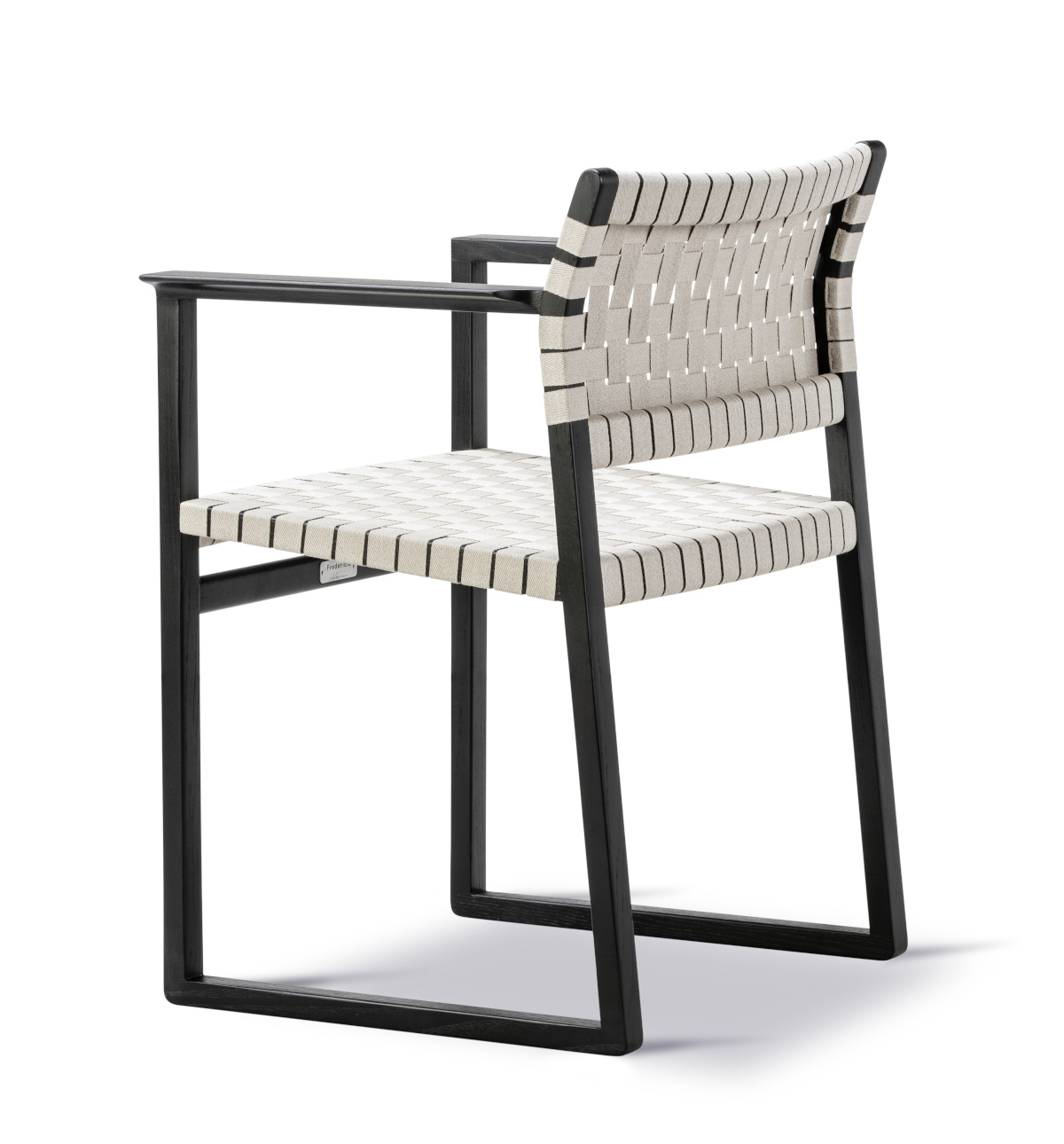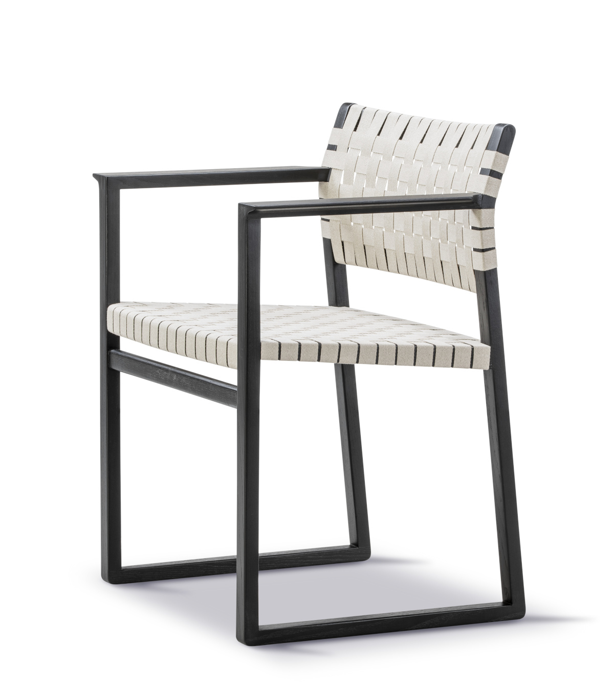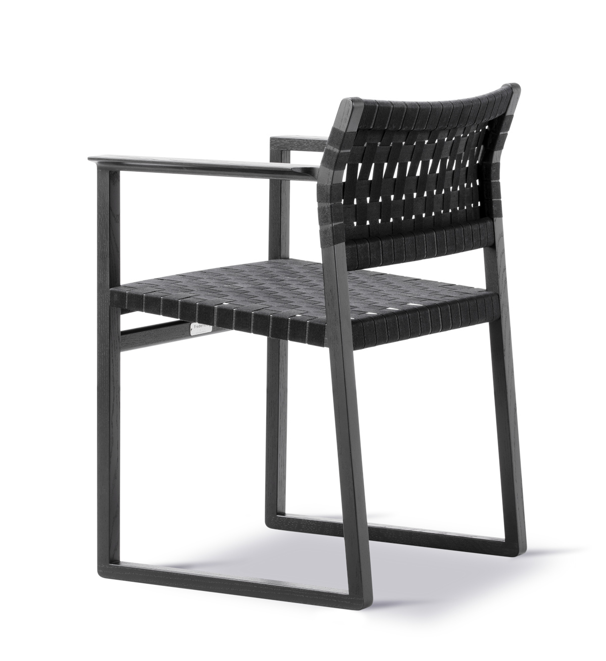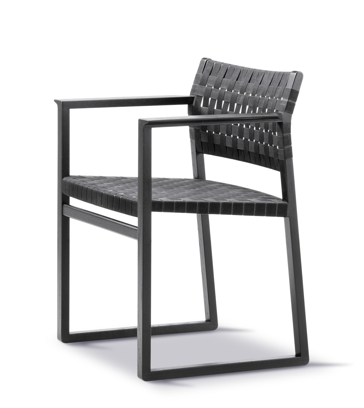 Fredericia - BM62 Armlehnstuhl mit Leinengurt, eiche schwarz lackiert / leinengurt schwarz