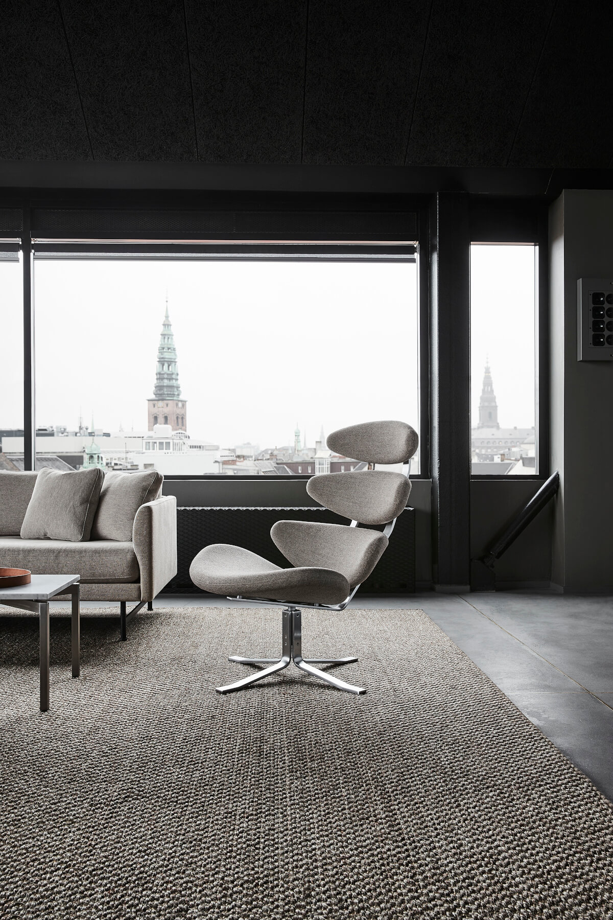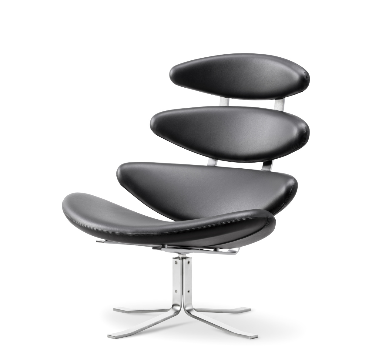 Corona Chair, brushed steel / leder omni 301 schwarz