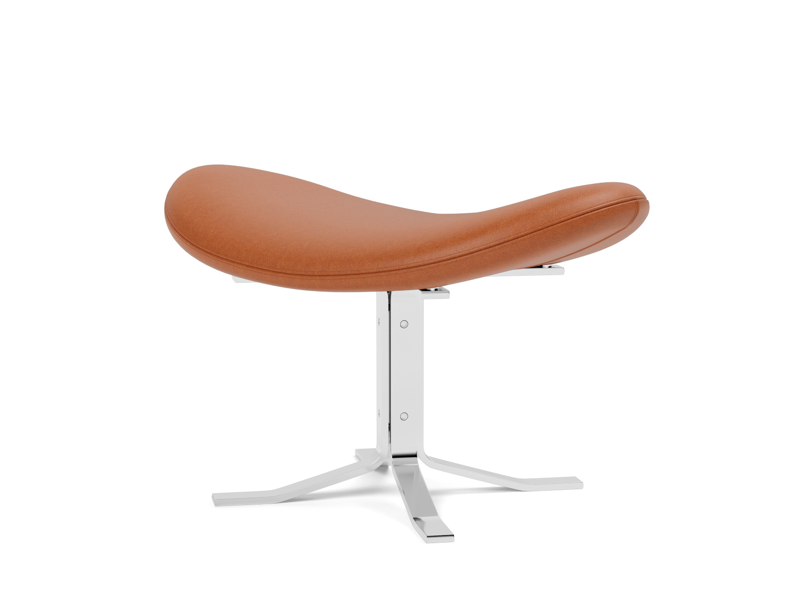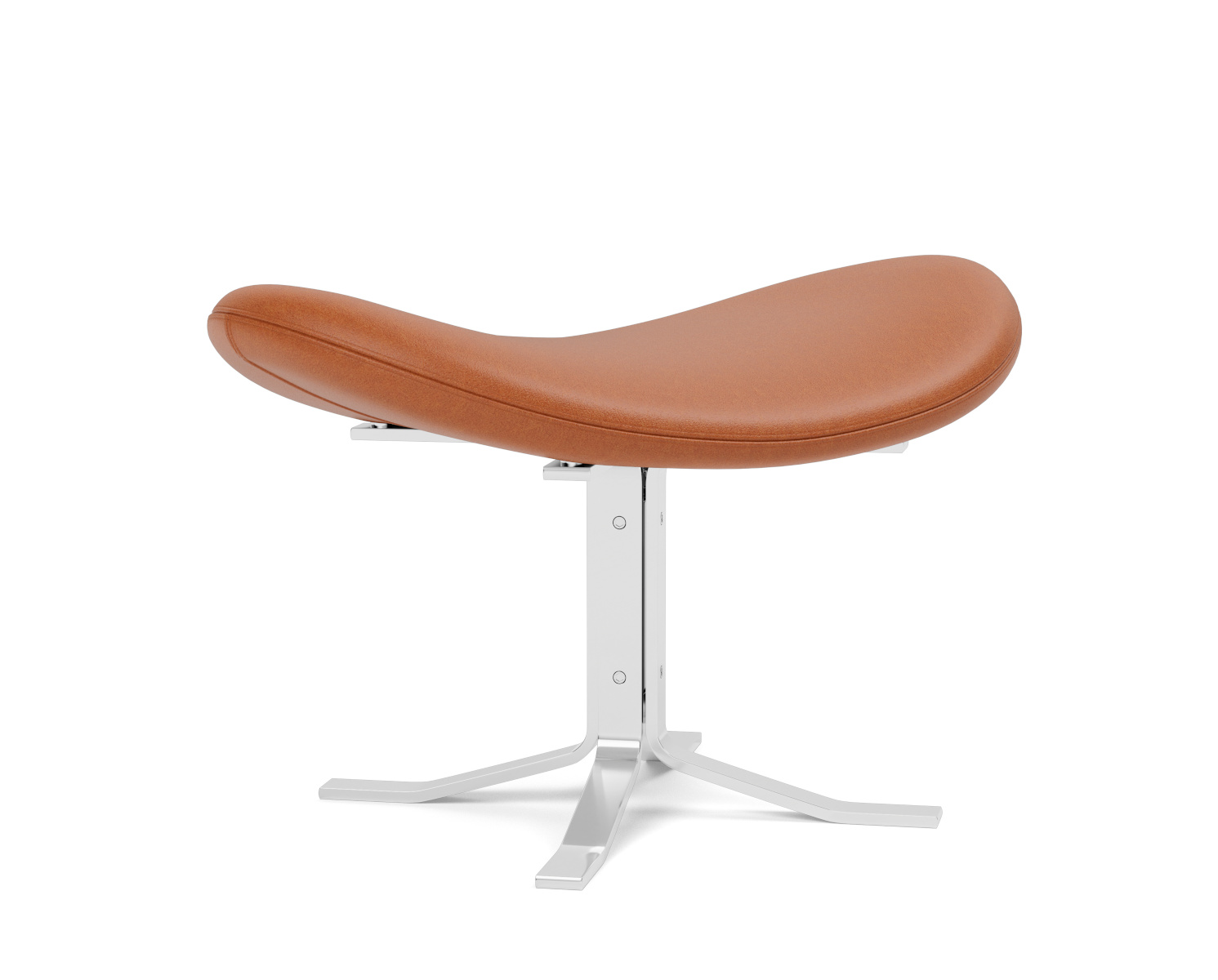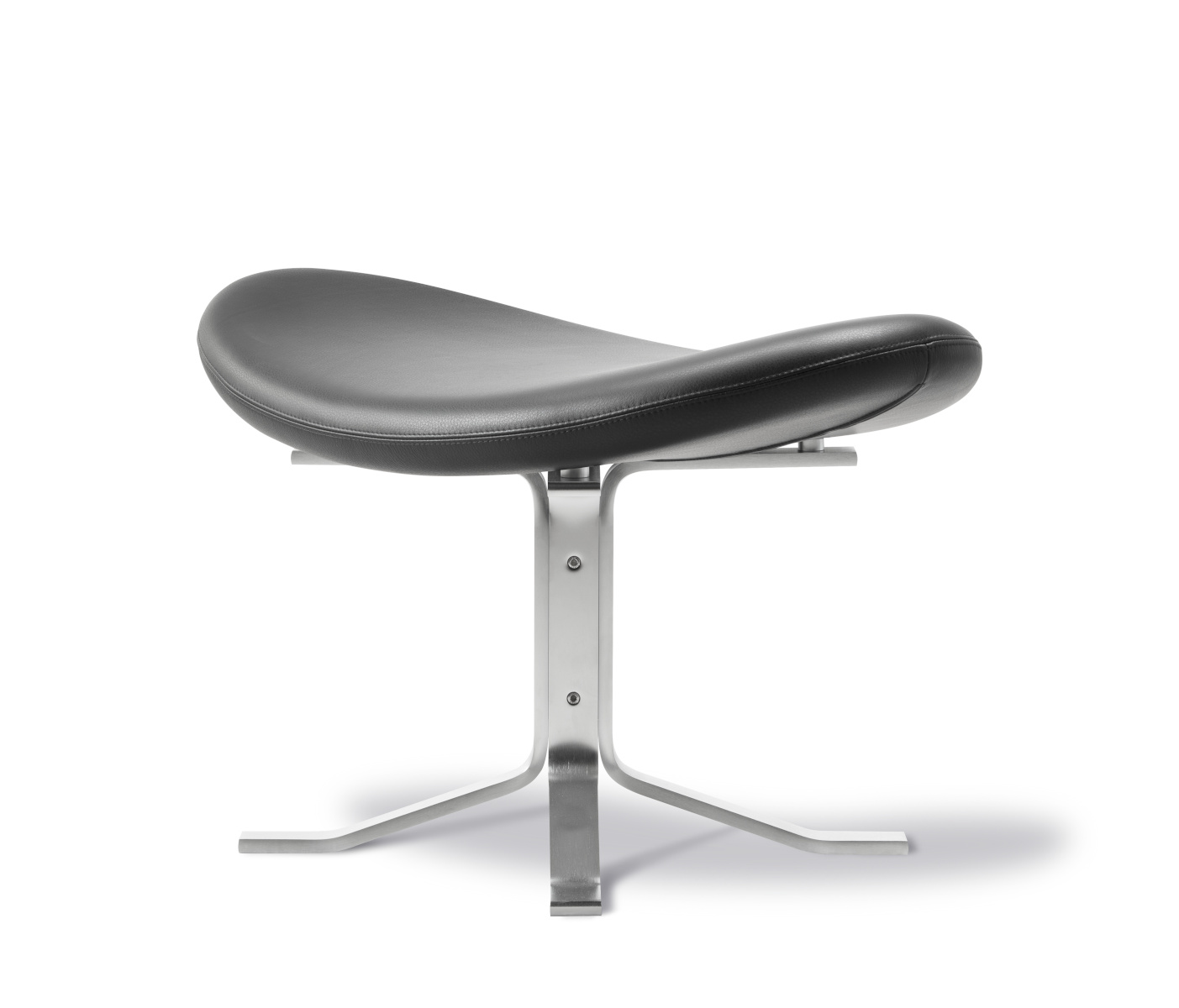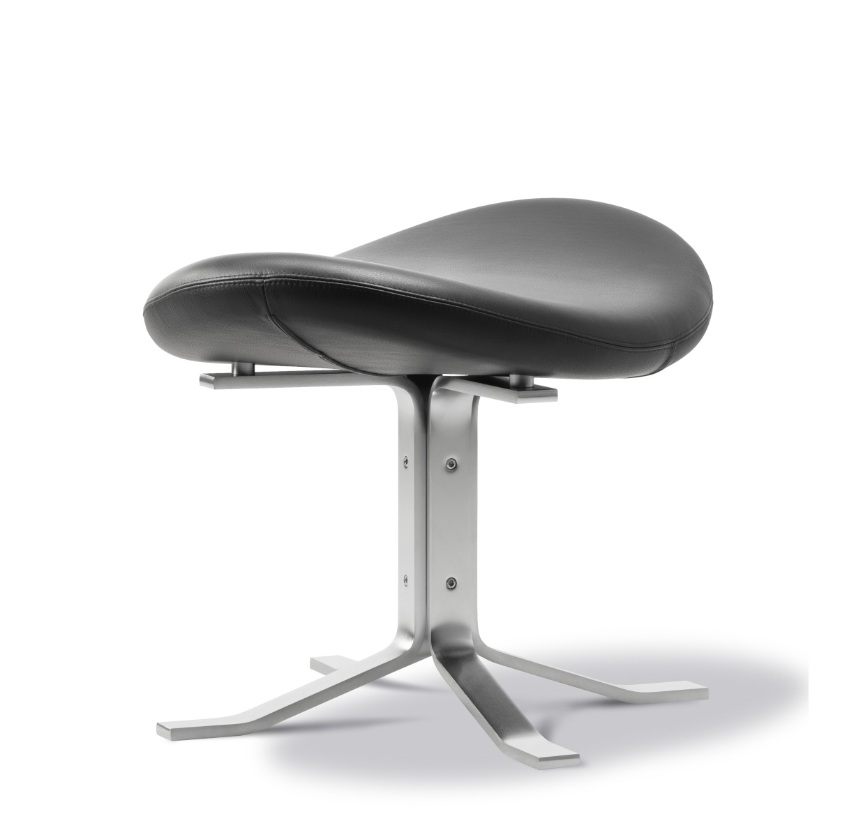Fredericia - Corona Ottoman, brushed steel / leder omni 301 schwarz