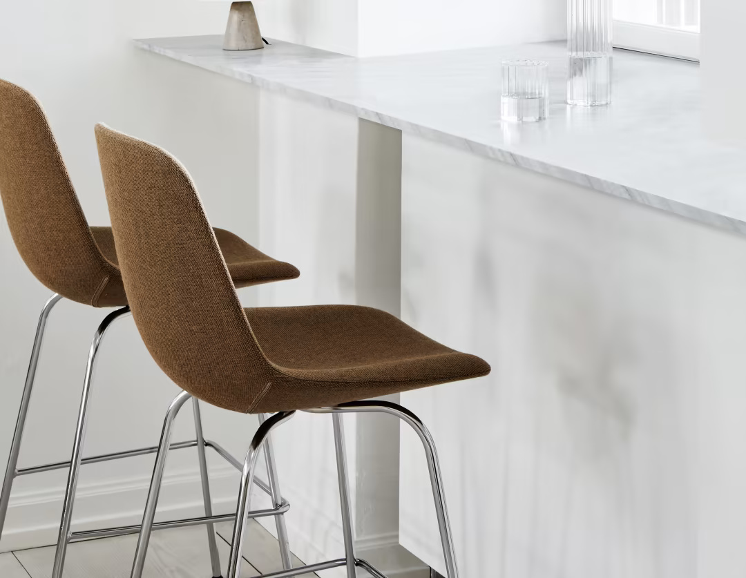| Material: | Barhocker mit einer Schale aus Kaltschaum mit Stahlverstärkung, vollständig mit Stoff oder Leder gepolstert. Untergestell aus Stahlrohr, montiert mit Kunststoffgleitern. Filzgleiter erhältlich. |