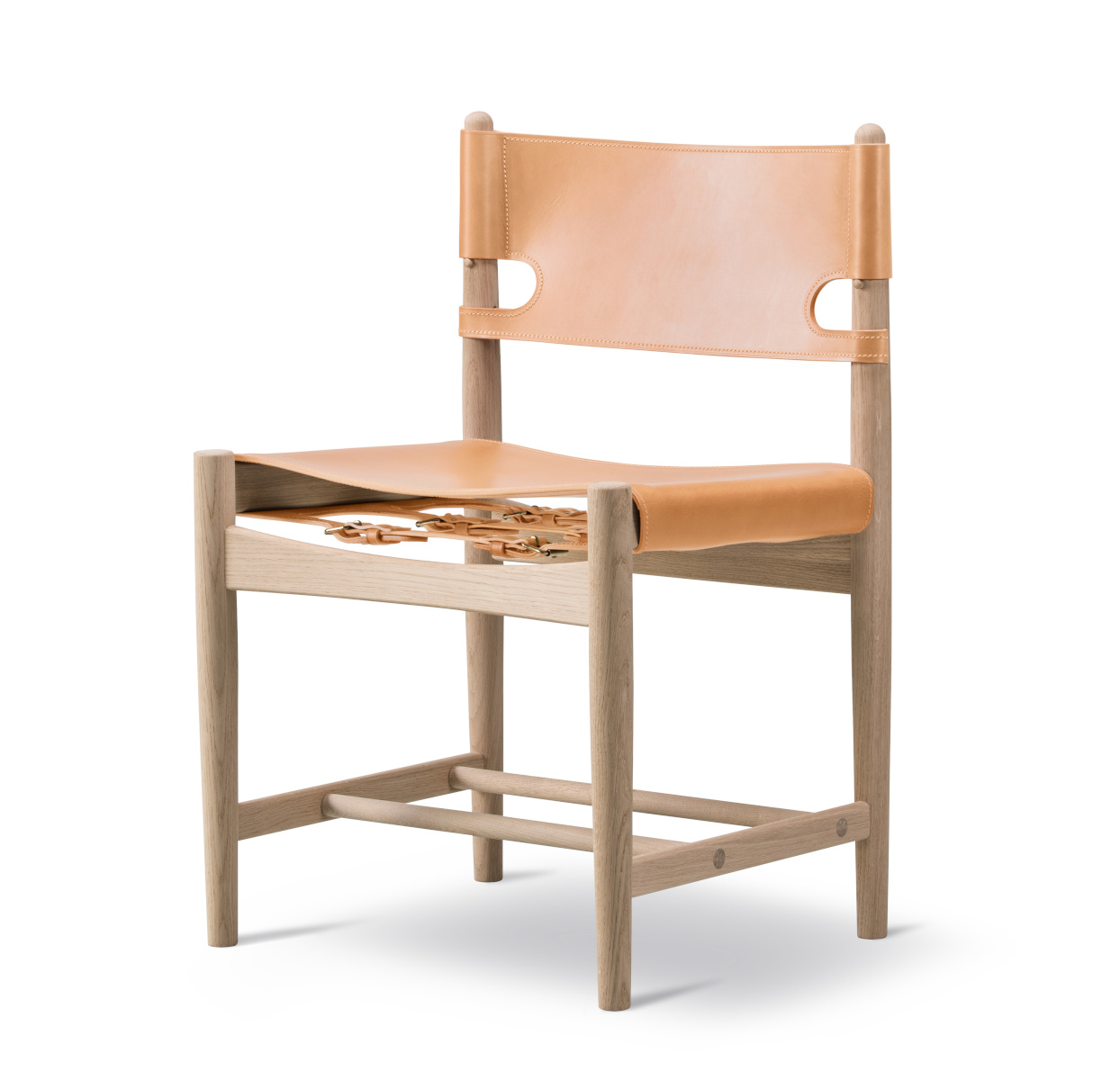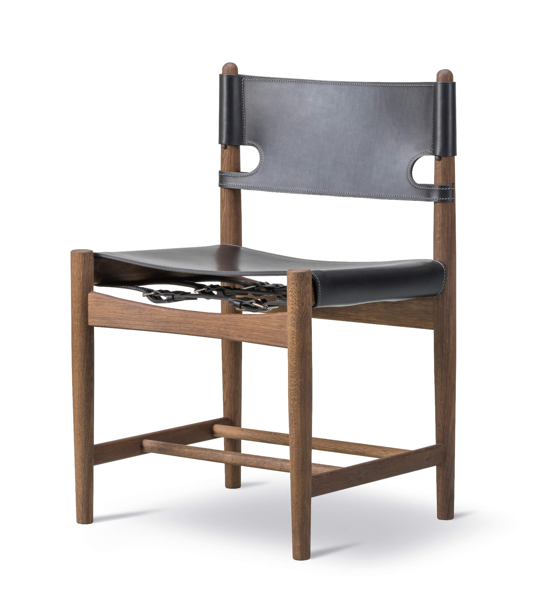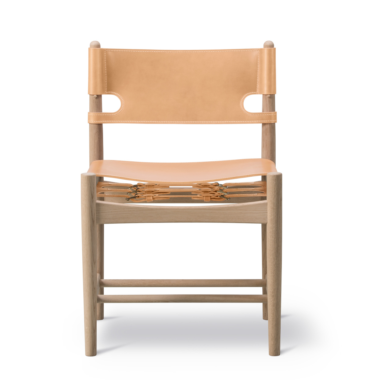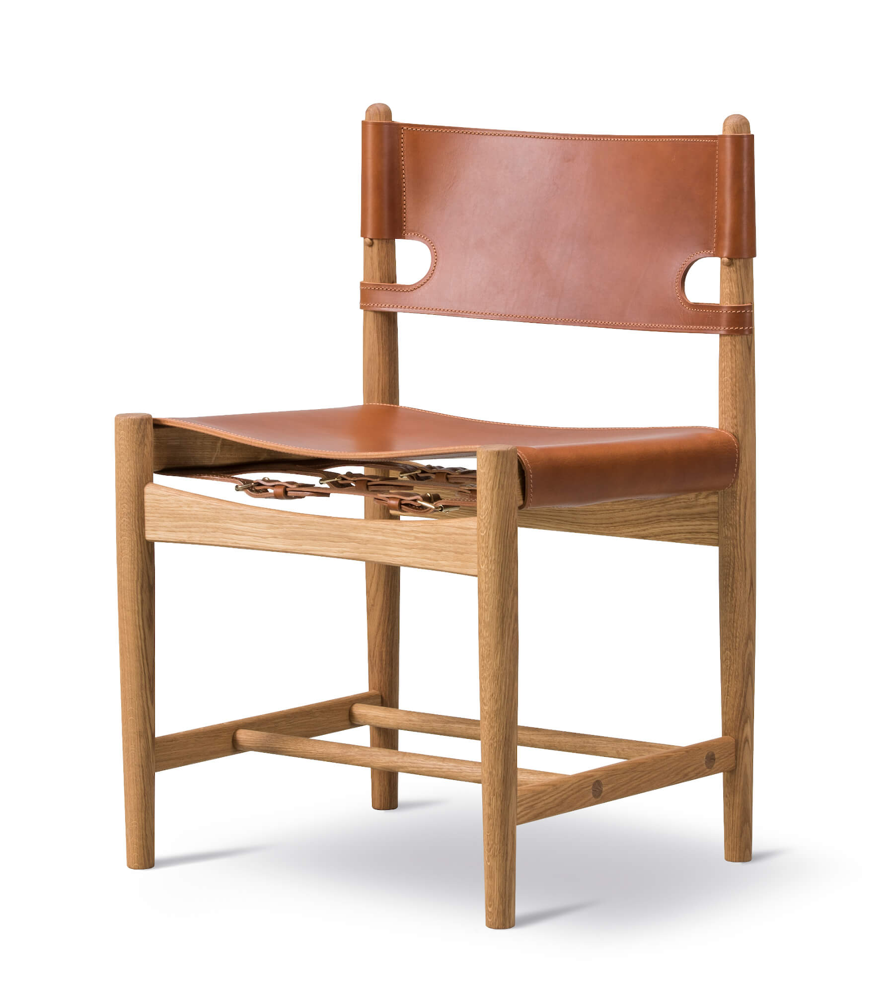 Der dänische Designer Børge Mogensen war auf einer Reise durch Spanien um 1958 von der Manufaktur von Stühlen mit einer Sitzfläche aus Sattelleder inspiriert und kreierte den bis heute ikonischen Spanish Chair. Fredericia legt Redesign des berühmten Sessel auf mit dem "Spanish Dining Chair".