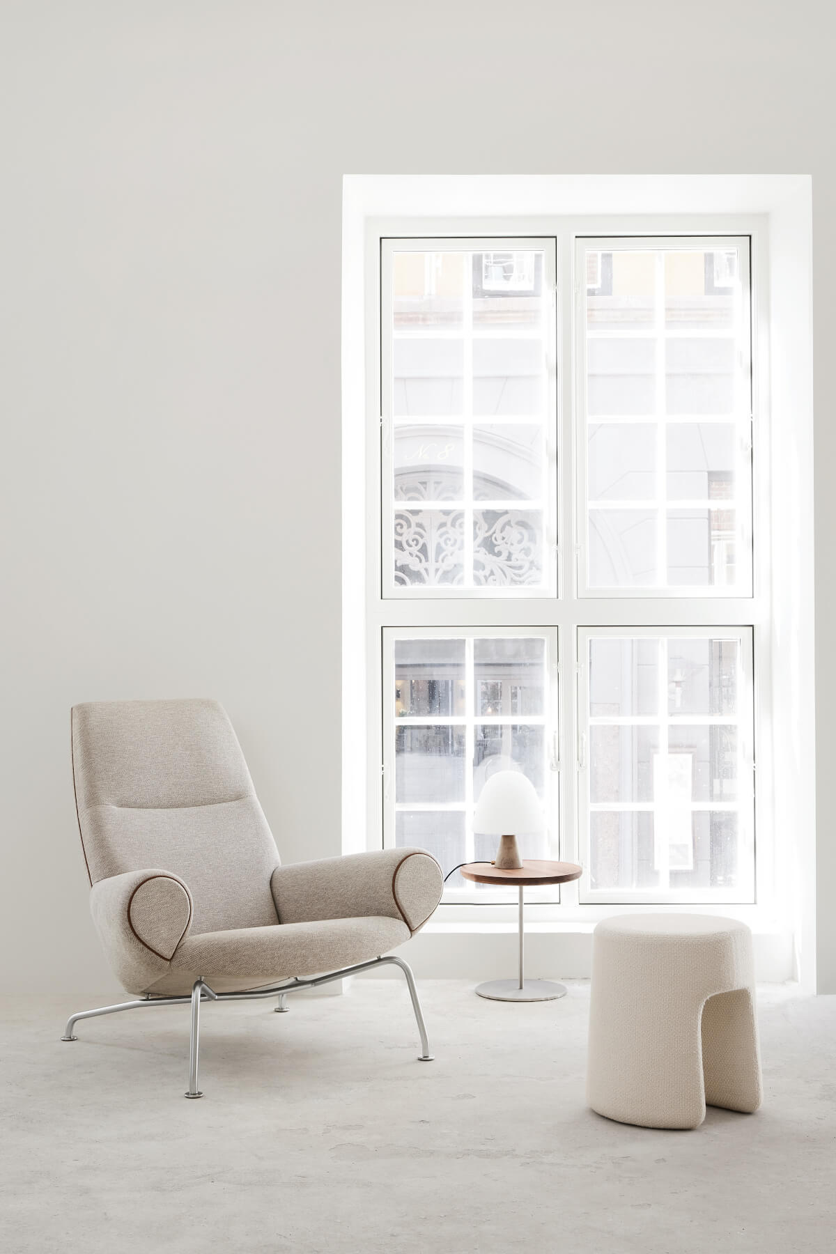 | Details: | Das weibliche Gegenstück zum Ox Chair ist Hans J. Wegner der Queen Chair, der viele der gleichen gleiche Merkmale aufweist. Mit seinen großzügigen, fast zylindrischen Armlehnen und der hohen, majestätischen Rückenlehne, die sich bis stützt, ist der Queen Chair eine ebenbürtige Ergänzung der maskulinen Präsenz des Ox Chair. Königlich und entspannt, verkörpert der Queen Chair Wegners Überzeugung, dass ein Design nur dann auffallend sein kann, wenn es Zweckmäßigkeit. |