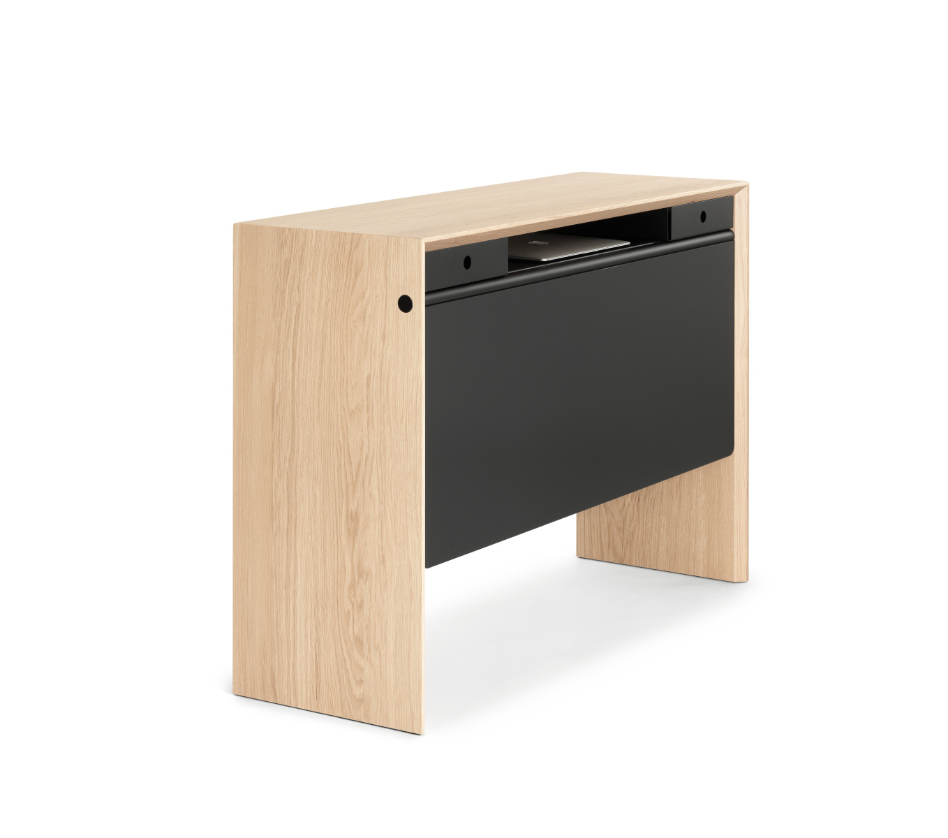 | Details: | Mit La Punt werden auf platzsparende Weise Anforderungen erfüllt, die ein professionelles Arbeiten zuhause am Bildschirm erfordert. Im Kern handelt es sich um eine brückenartige Massivholzkonsole, die über eine klappbare Arbeitsfläche verfügt. |