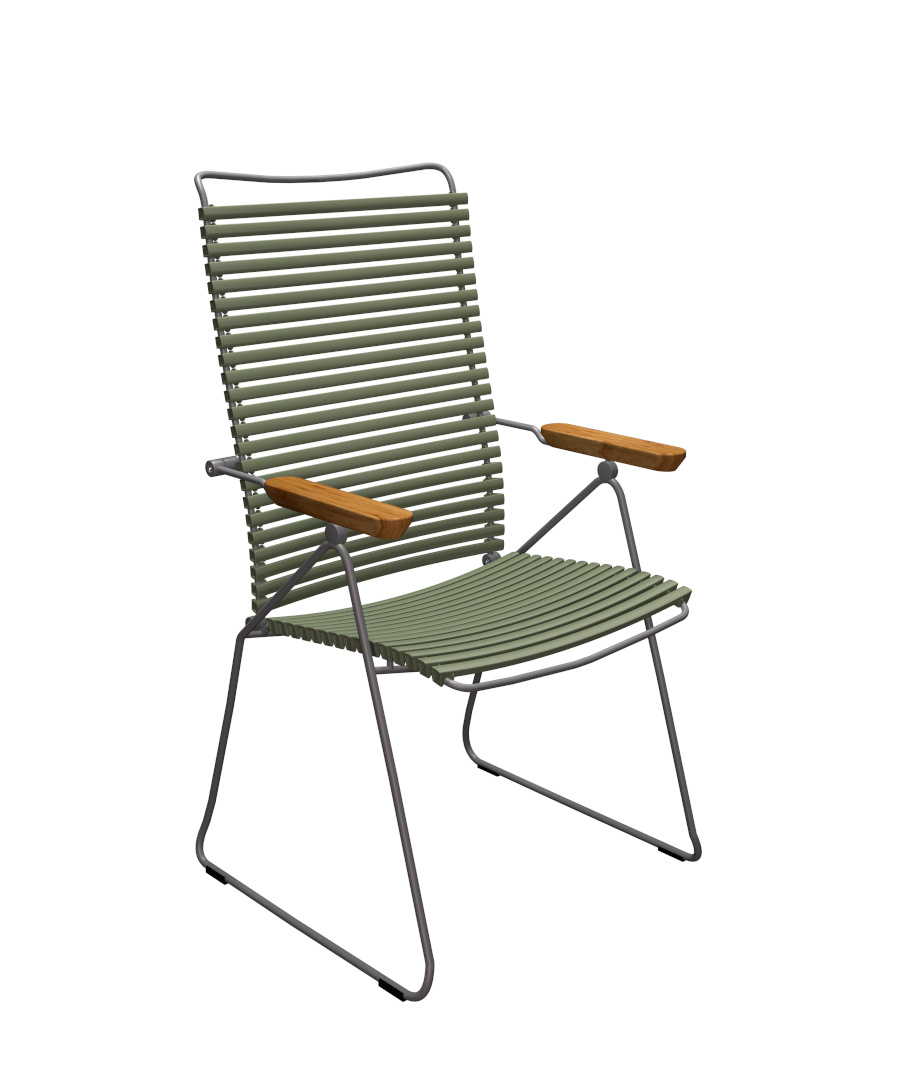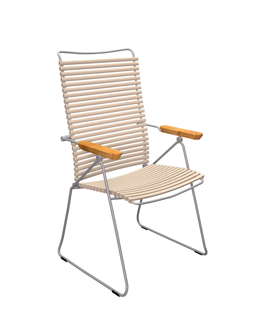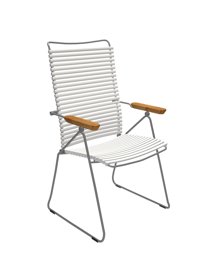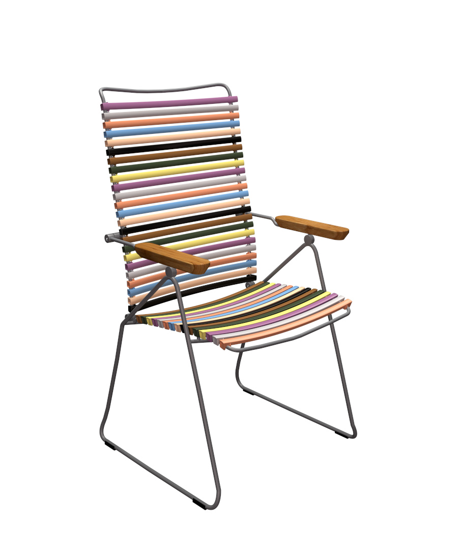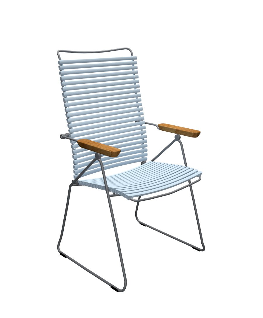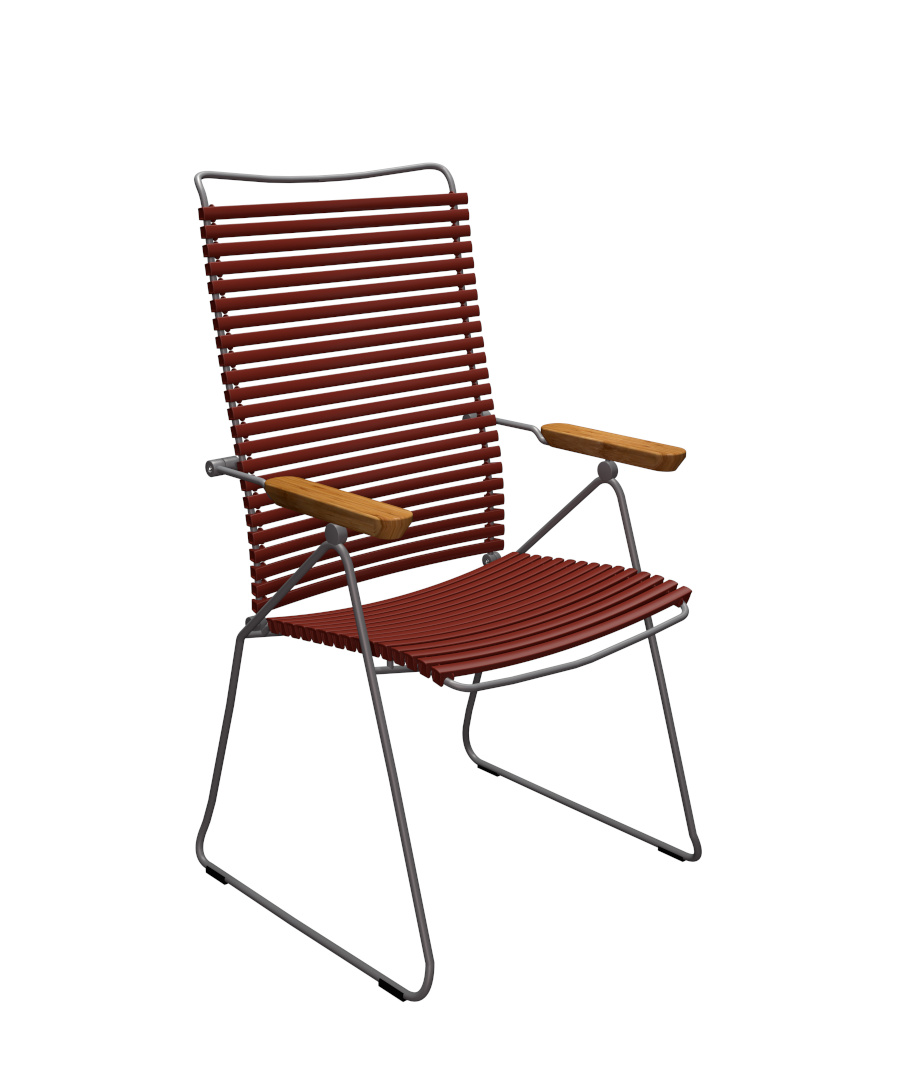 In einer klaren, zeitlosen Linienführung präsentiert sich der HOUE Click Position Chair als außergewöhnlich stilvolle Sitzgelegenheit, die Ästhetik und Komfort harmonisch vereint. Seine faszinierende Formsprache und die fein abgestimmten Proportionen verleihen modernen Wohn- und Arbeitsbereichen eine subtile Exklusivität. Der Click Position Chair bringt skandinavische Leichtigkeit in anspruchsvolle Interieurs und fügt sich als präzise gestaltetes Designelement unaufdringlich, aber markant in unterschiedliche Raumkonzepte ein. Die Möglichkeit, die Sitzposition individuell anzupassen, unterstreicht seine Vielseitigkeit und seinen funktionalen Anspruch. Besonders in lichtdurchfluteten Wintergärten, auf stilvoll gestalteten Terrassen oder in repräsentativen Geschäftsräumen entfaltet der Click Position Chair seine einladende Wirkung – stets mit einem feinen Gespür für Eleganz und Komfort. Der Stuhl setzt ein dezentes Statement und steigert den Anspruch an Lebensqualität sowie ästhetische Wirkung zugleich. Für brillanten Sitzkomfort sorgt die Verbindung ausgesuchter Materialien: Das pulverbeschichtete Metallgestell trifft auf wetterfestes Bambusholz in den Armlehnen, während flexible, farbige Kunststofflamellen der Sitzfläche einen markanten Akzent geben. Entworfen von Designer Henrik Pedersen, überzeugt der HOUE Click Position Chair mit seinen großzügigen Maßen von 60,5×58×90 cm und ist in einer Vielzahl an edlen Farbkombinationen erhältlich. Die individuell einstellbare Rückenlehne garantiert passgenauen Komfort für jede Situation.Click Position Chair – Qualität in Material und Funktion