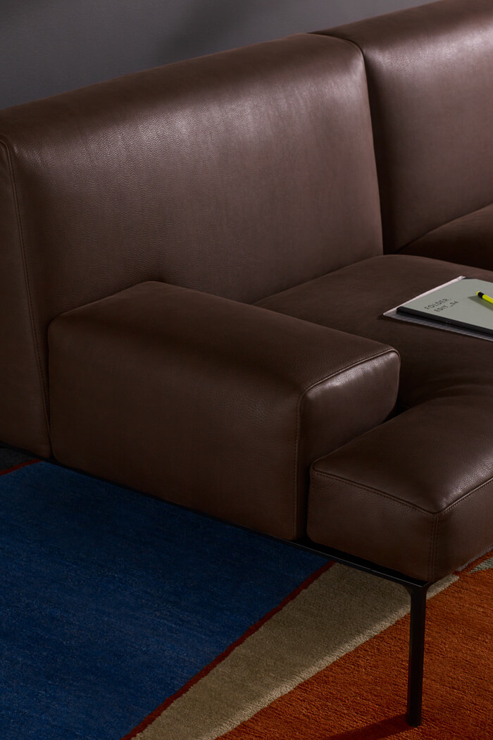 | Material: | Modulares Sitzsystem mit Gestell aus Aluminiumprofilen und elastischen Riemen, Beine aus recyceltem Aluminium. Kissen und Rücken aus feuerhemmendem PU-/Polyesterschaum, Bezug Stoff, Kunst- oder Softleder. Metall pulverbeschichtet. |