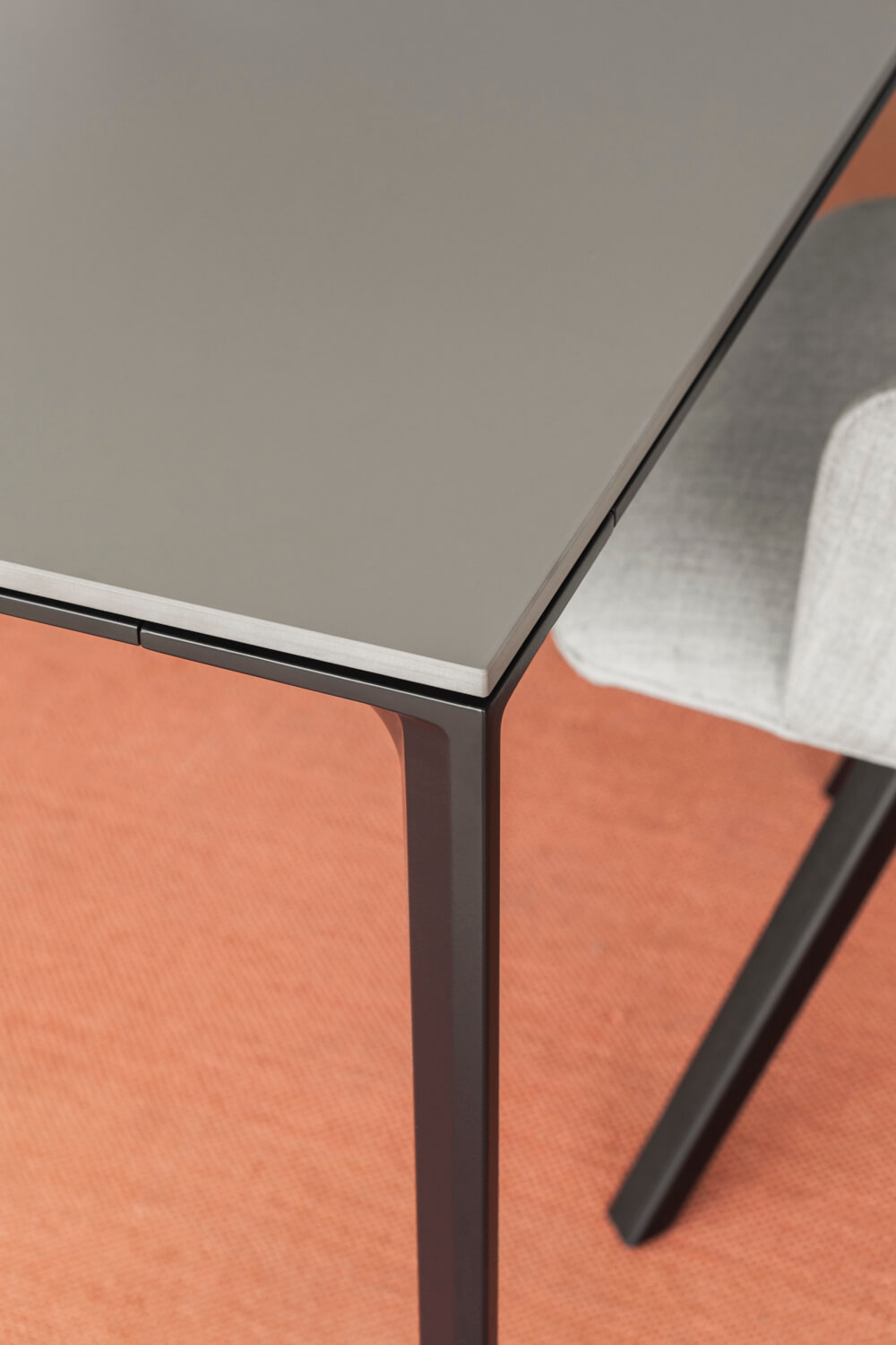 | Material: | Modulares Tischsystem mit Rahmen aus Aluminiumprofilen und Eck-/Verbindungsbeinen aus recyceltem Aluminiumdruckguss, pulverbeschichtet. Tischplatte aus Holz in verschiedenen Ausführungen oder HPL Fenix® (10 mm). Robust, flexibel kombinierbar. |
