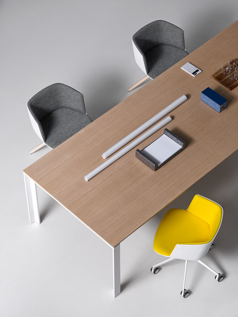 | Material: | Tisch mit Gestell aus Aluminiumprofilen, pulverlackiert. Tischplatte in HPL Fenix® mit Stärke 10 mm oder aus Holz mit Stärke 16 mm. Gleiter aus Polyethylen. |
