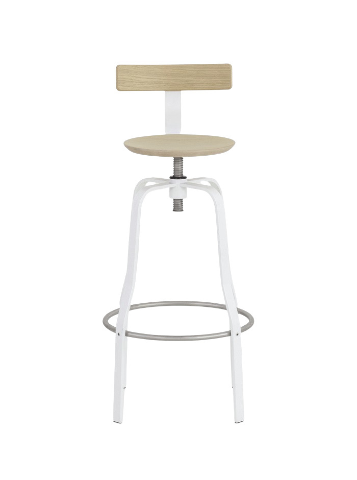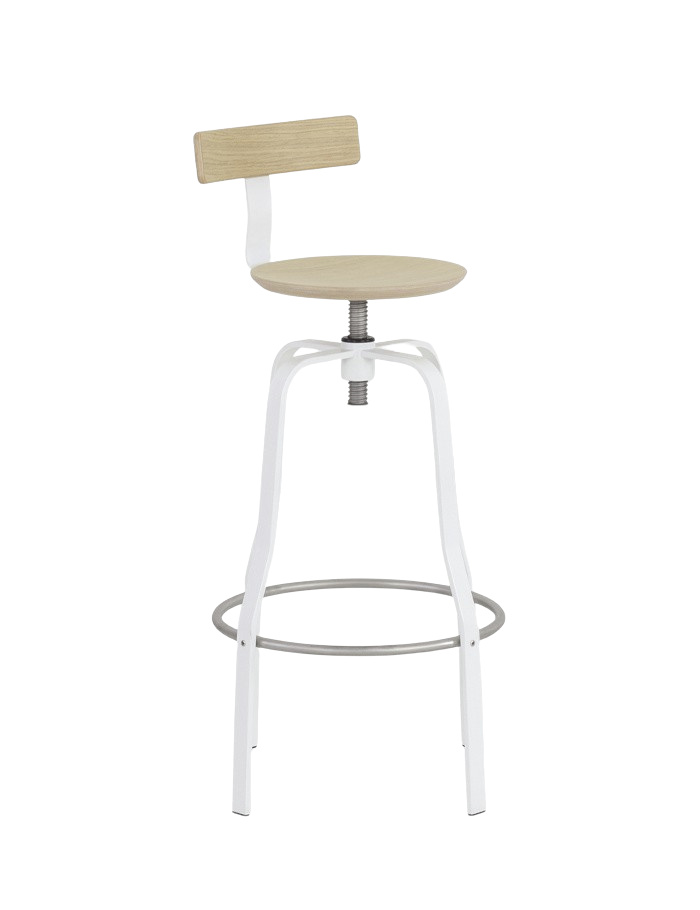 | Material: | Drehbarer Barhocker mit Höhenverstellung durch Gewinde. Gestell aus Edelstahl AISI 304, sandgestrahlt oder pulverlackiert. Fußstütze aus Edelstahl. Sitz aus formgepresstem Multiplex in verschiedenen Ausführungen. Gleiter aus Polyethylen. |