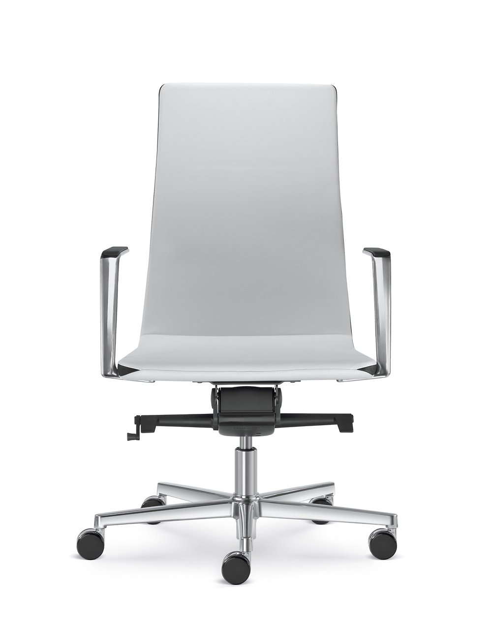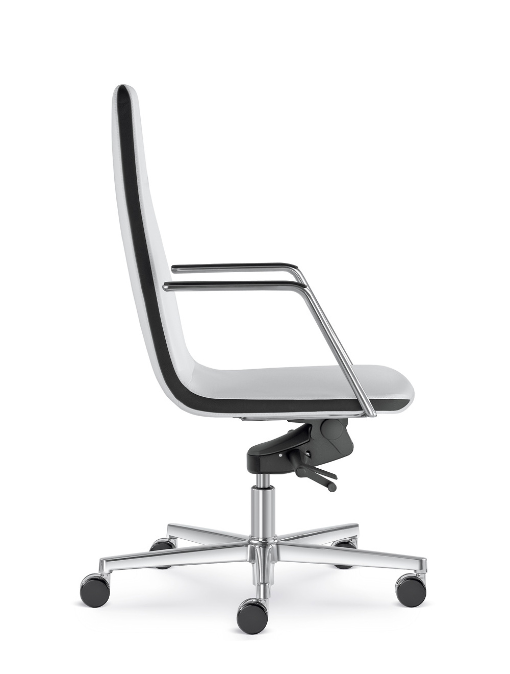 | Hinweis: | Die Exklusivität der Modellreihe wird durch einen dekorativen Designsteg in Kontrastfarbe oder in gleicher Farbe der Sitzschale seitlich an der Rückenlehne unterstrichen. |