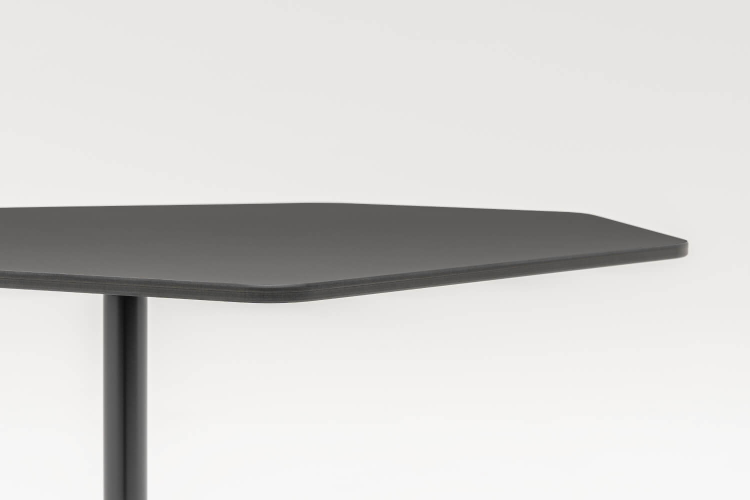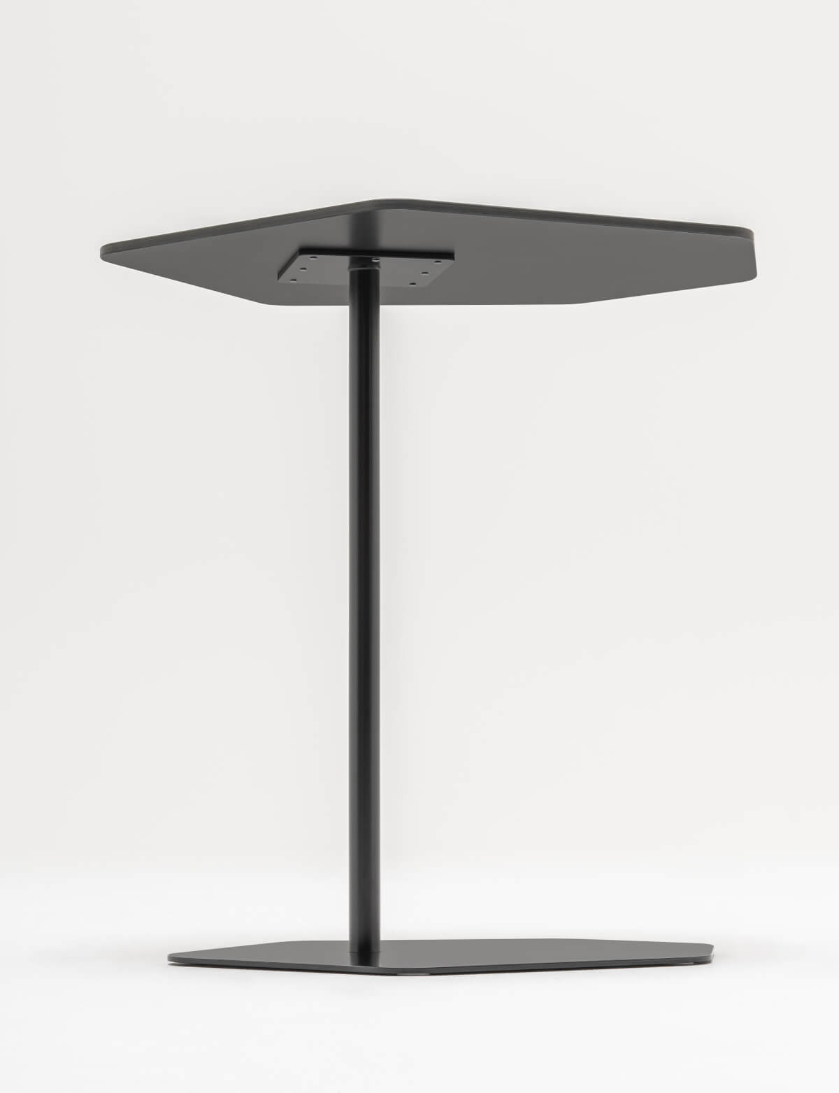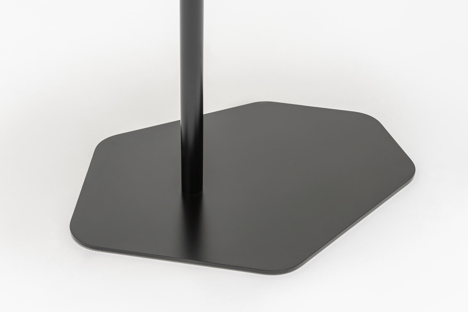 | Material: | Platte: in der Masse gefärbtes HPL, 10 mm stark; Gestell: vertikale Säule aus einem Rohr Ø 30 mm hergestellt, Wandstärke 2 mm, pulverbeschichtet; Basis: Metall, pulverbeschichtet, Stärke 5 mm |