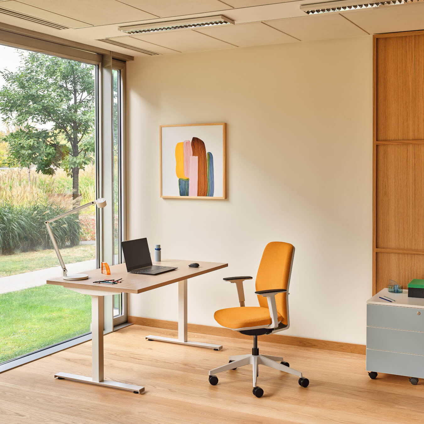 | Sitz: | Sitz: gepolstert, verstellbar - 60 mm; 50 mm stark, Dichte von 52kg/m3; Rückenlehne: Mesh (Atmungsaktive Netzrückenlehne) |