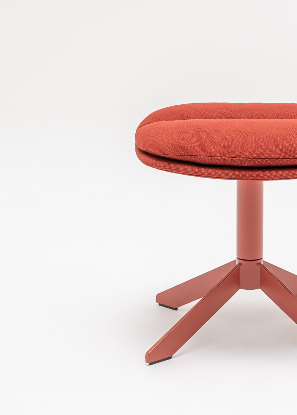 | Material: | Fußstütze: Metall, pulverbeschichtet; Sitz: Sperrholz + Kissen - Federn + Polyurethanschaum, gepolstert |