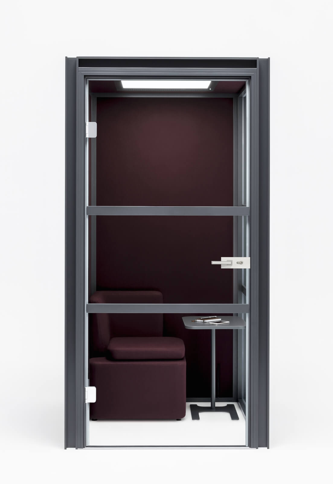 | Hinweis: | Dank des durchdachten Designs konnte der Boden entfernt werden, ohne an Stabilität zu verlieren. Es erhöht die Mobilität, die Schallschutzkabine erleichtert die Kabelführung. Hako bietet viele Möglichkeiten an: Büro-Telefonzelle in der Basisversion oder das eigenständige, architektonische Ganze aus der Kombination einzelner Elemente. |