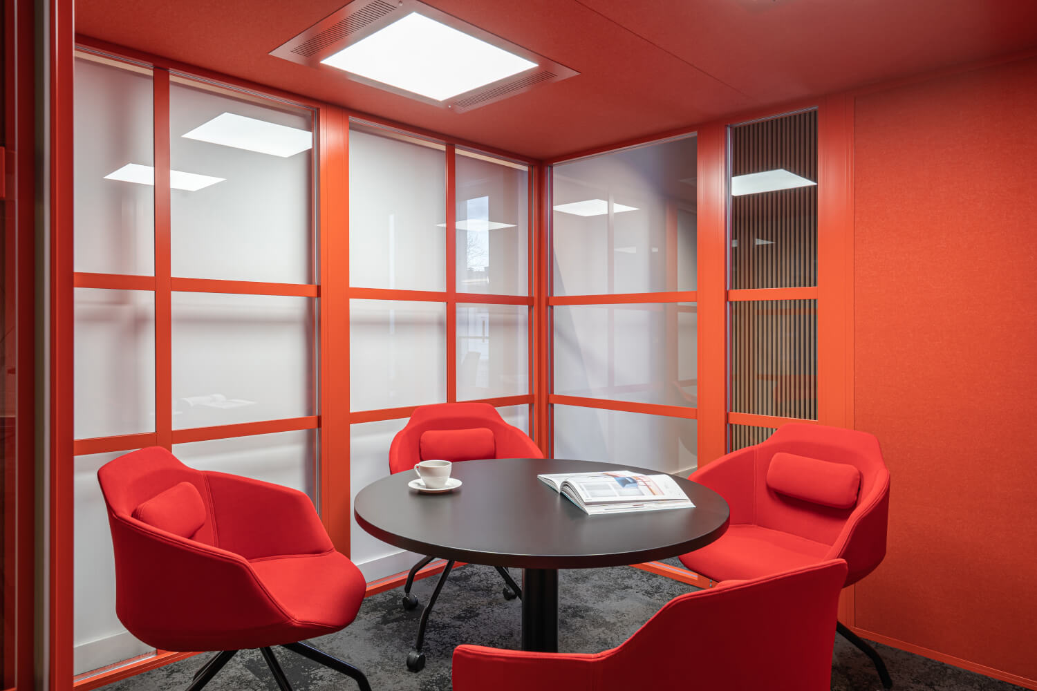 | Details: | Ein Konferenzraum, der keine dauerhaften Wände erfordert - Hako Meeting XL-System ist eine geräumige Schallschutzkabine, die die Möglichkeit anbietet, schnell den Platz für das Treffen in einer kleinen Gruppe zu organisieren. Die Eigenschaften von Büro-Telefonzellen und Lüftungssystem ermöglichen das komfortable Funktionieren sogar bis zu sechs Teilnehmern. |