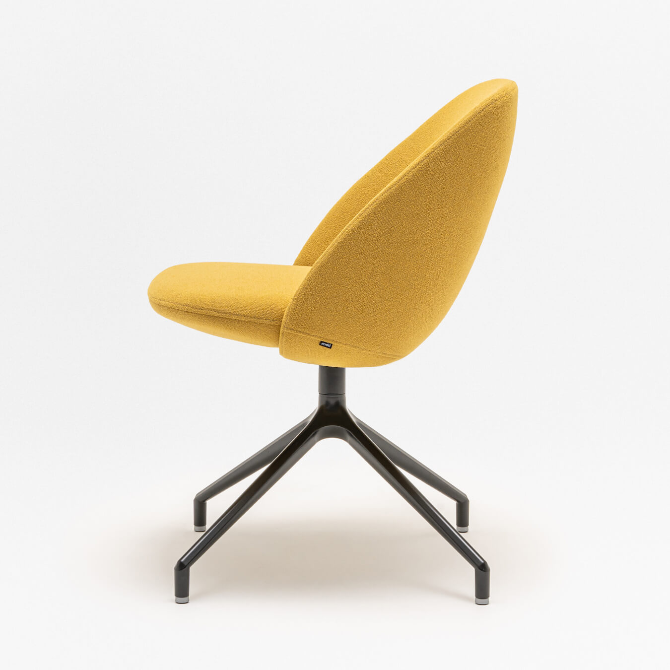 | Material: | Rückenlehne: Formschaum, Dichte 75 kg/m3, gepolstert; Sitz: Formschaum, Dichte 98 kg/m3, gepolstert; Gestell: 4-Sternfuß, Aluminium, pulverbeschichtet, Drehsitz - 360°, Aluminiumguss, Beine sind mit Füßchen aus Polypropylen abgeschlossen |