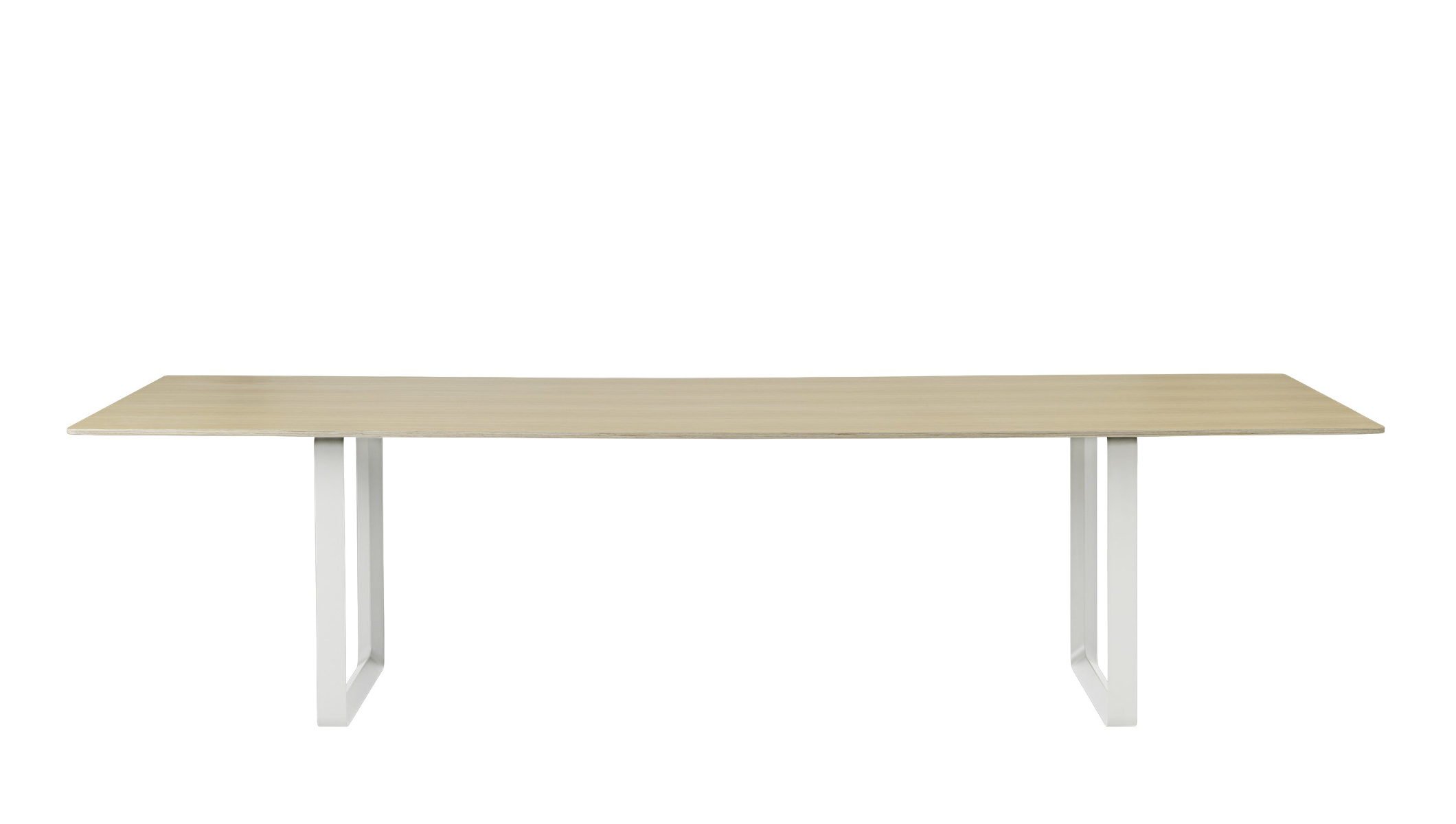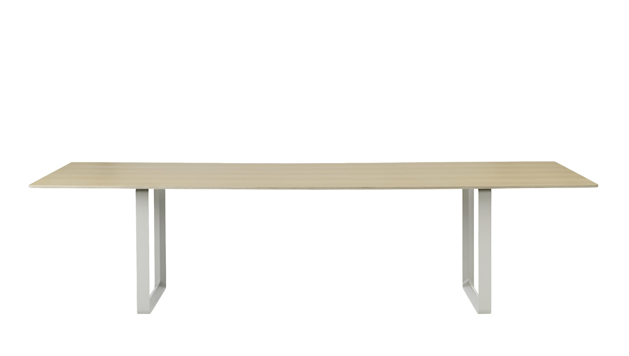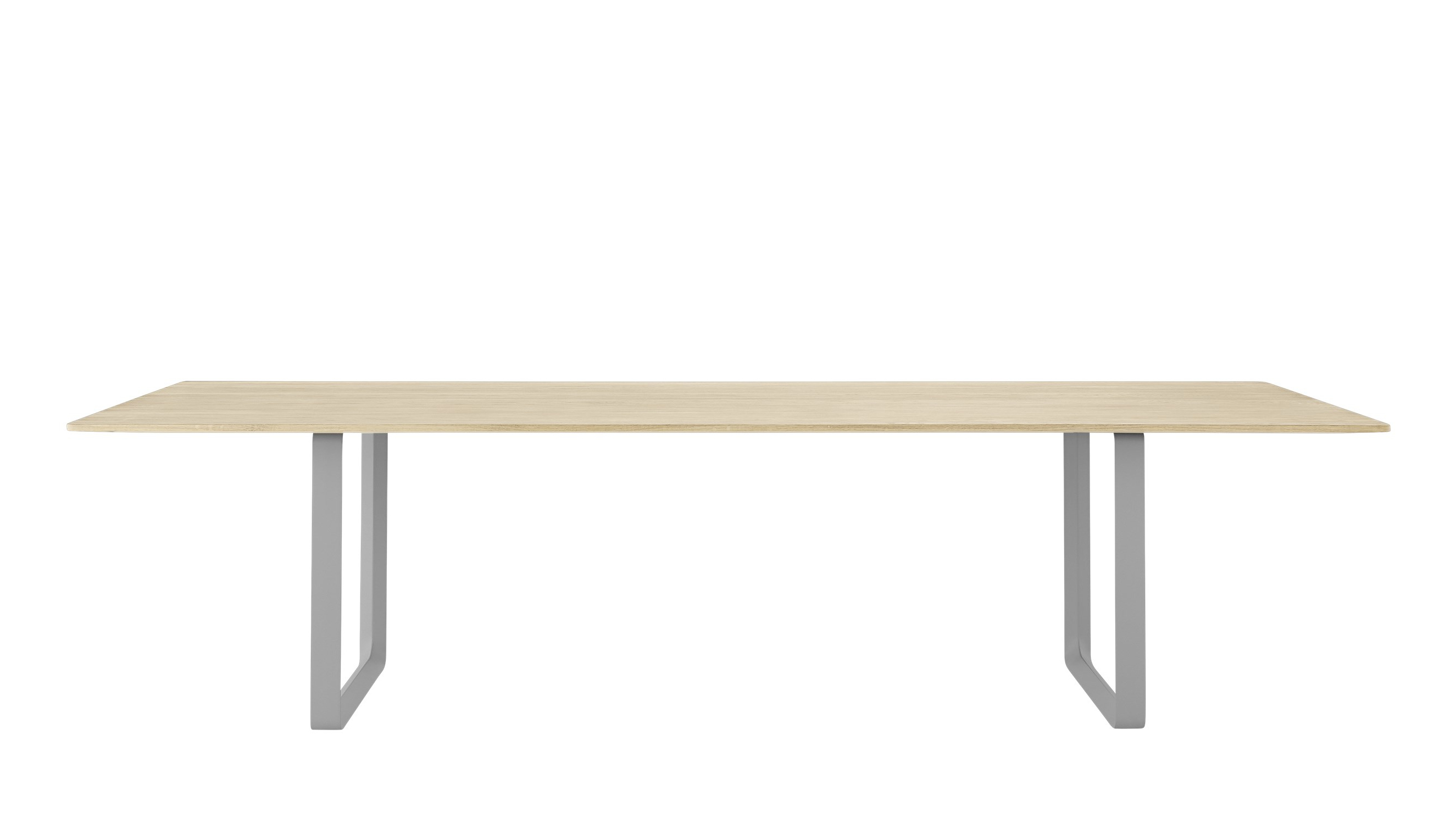 Der Muuto 70/70 Tisch vereint auf eindrucksvolle Weise skandinavische Designtradition mit moderner Funktionalität und schafft so eine ästhetische Bühne für anspruchsvolle Wohn- und Arbeitsbereiche. Klare Linien und eine schlichte, selbstbewusste Formensprache prägen das Erscheinungsbild und lassen viel Raum für Individualität in der Umgebung. Durch seine großzügigen Proportionen strahlt der 70/70 Tisch mit 295 x 108 cm eine kraftvolle Präsenz aus und wird zum architektonischen Element im Raum – ob als exklusiver Konferenztisch, repräsentativer Esstisch oder kreativer Mittelpunkt in großzügigen Loftlandschaften. Die minimalistische Eleganz des 70/70 Tisches offenbart sich dank filigraner Details und sorgfältiger Verarbeitung, die höchsten Ansprüchen an Qualität und Ästhetik entspricht. Gefertigt wird der Tisch nach einem Entwurf des renommierten Designers TAF Studio. Die markanten Aluminium-Tischböcke bilden einen spannenden Kontrast zur warmen Ausstrahlung der edlen Eichenholzplatte, die wahlweise in lackiert, geseift oder schwarz erhältlich ist. Mit einer Länge von 295 cm und einer Breite von 108 cm bietet der 70/70 Tisch großzügigen Platz für vielfältige Nutzung und beste Funktionalität.Muuto 70/70 Tisch – Perfekte Proportionen und erstklassige Verarbeitung