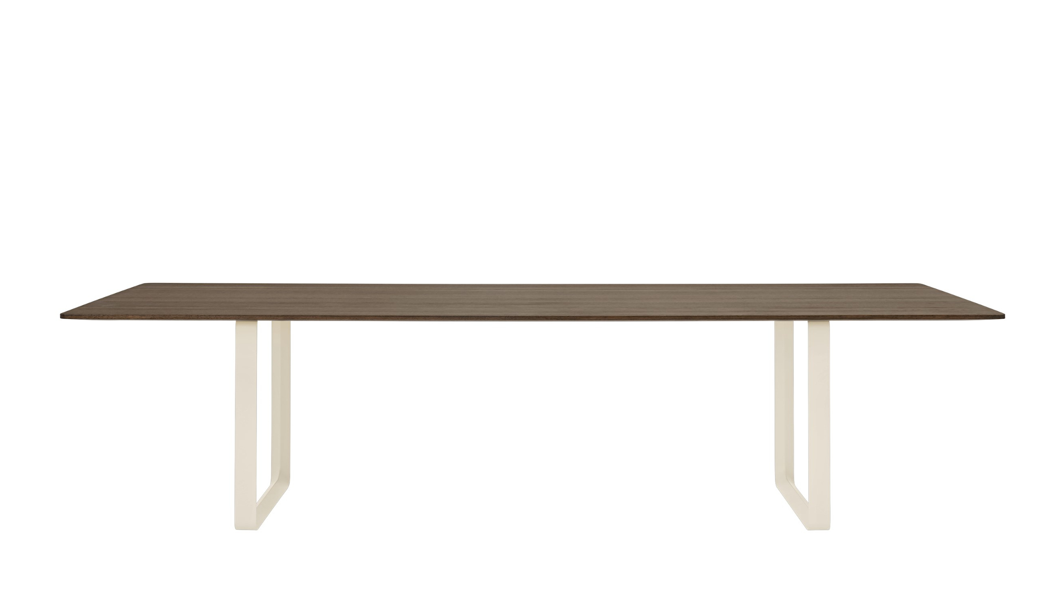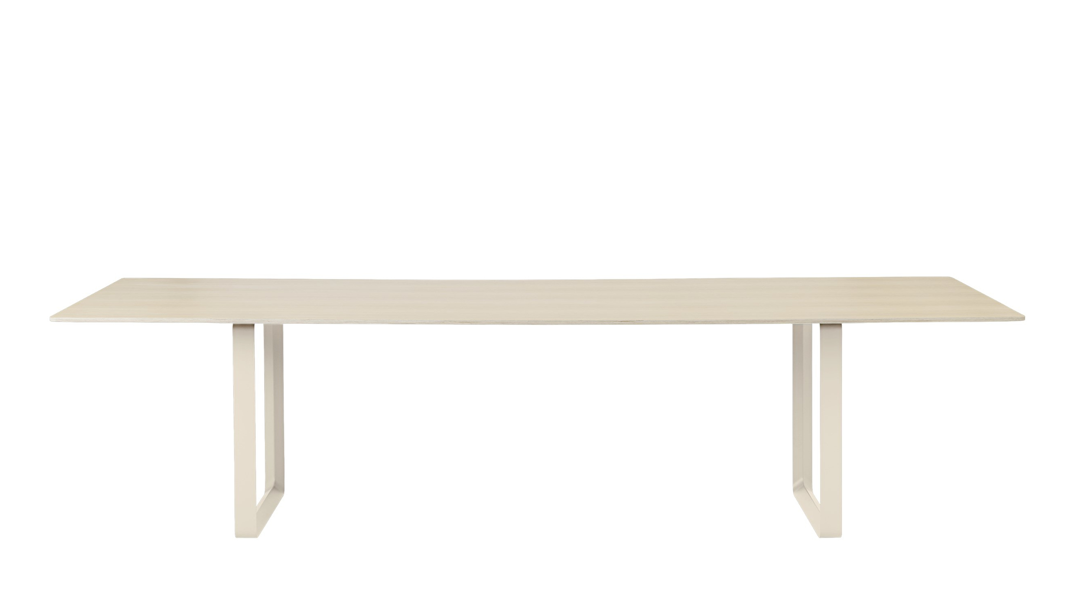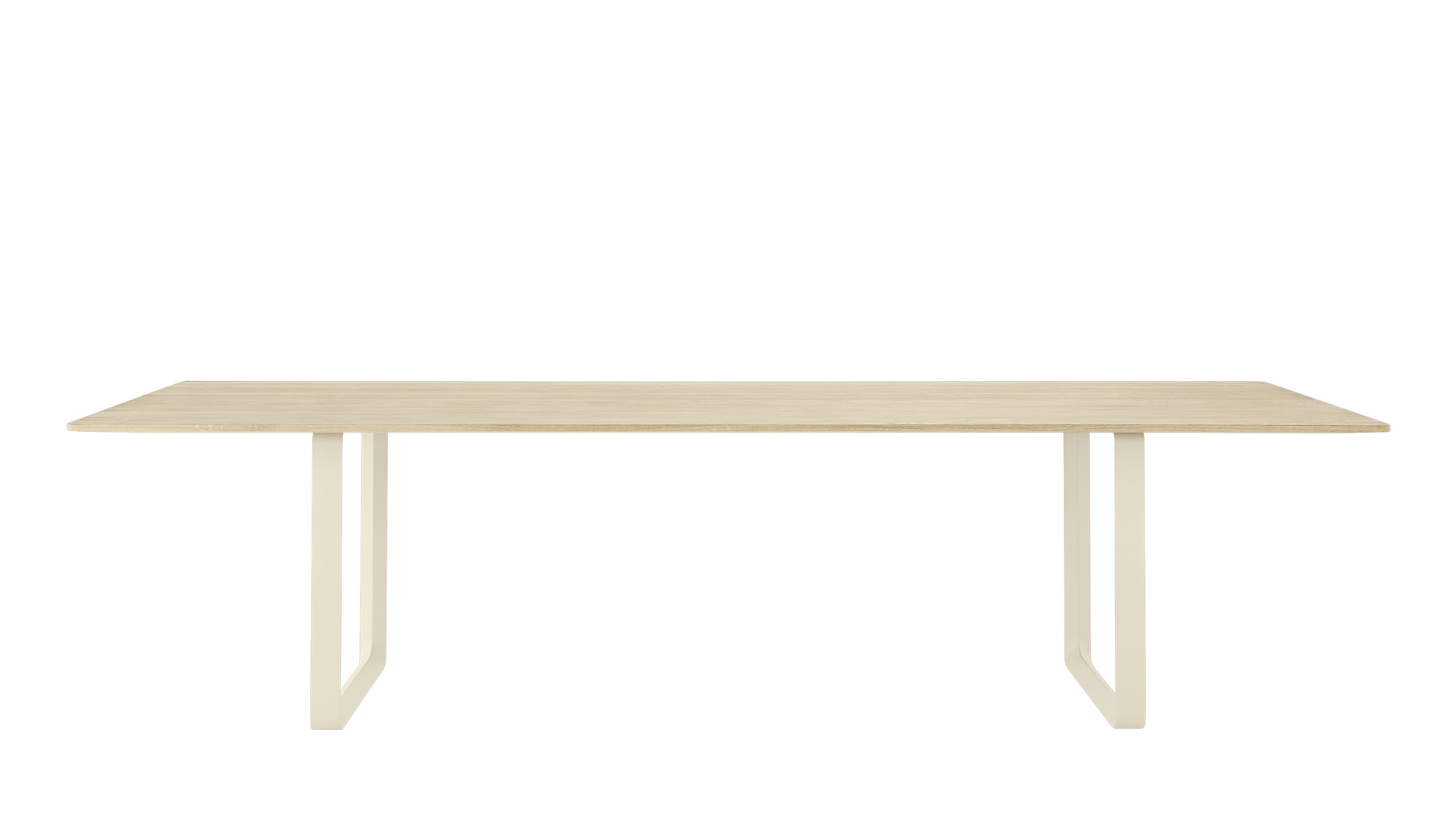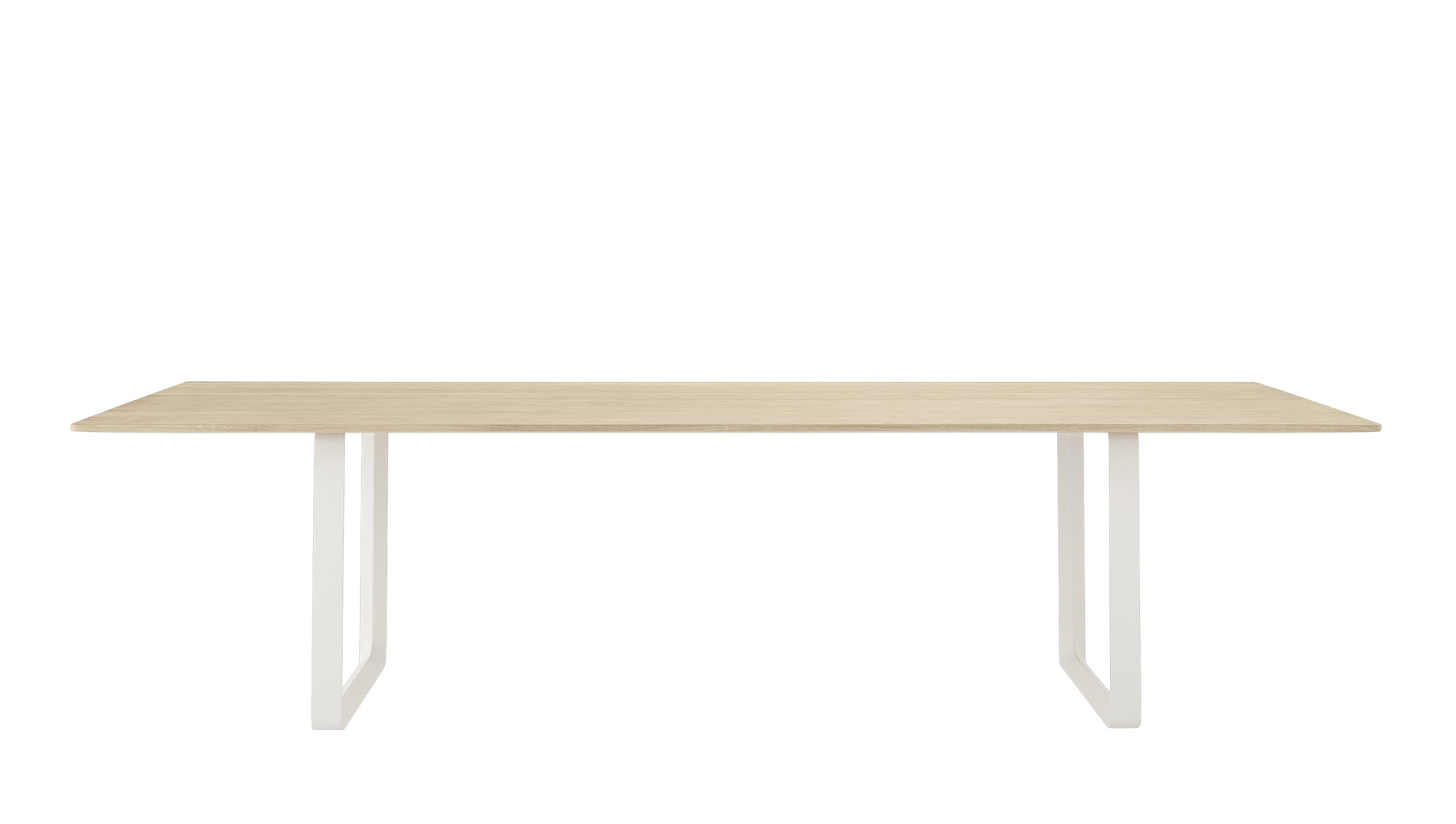 Der Muuto 70/70 Tisch vereint auf eindrucksvolle Weise skandinavische Designtradition mit moderner Funktionalität und schafft so eine ästhetische Bühne für anspruchsvolle Wohn- und Arbeitsbereiche. Klare Linien und eine schlichte, selbstbewusste Formensprache prägen das Erscheinungsbild und lassen viel Raum für Individualität in der Umgebung. Durch seine großzügigen Proportionen strahlt der 70/70 Tisch mit 295 x 108 cm eine kraftvolle Präsenz aus und wird zum architektonischen Element im Raum – ob als exklusiver Konferenztisch, repräsentativer Esstisch oder kreativer Mittelpunkt in großzügigen Loftlandschaften. Die minimalistische Eleganz des 70/70 Tisches offenbart sich dank filigraner Details und sorgfältiger Verarbeitung, die höchsten Ansprüchen an Qualität und Ästhetik entspricht. Gefertigt wird der Tisch nach einem Entwurf des renommierten Designers TAF Studio. Die markanten Aluminium-Tischböcke bilden einen spannenden Kontrast zur warmen Ausstrahlung der edlen Eichenholzplatte, die wahlweise in lackiert, geseift oder schwarz erhältlich ist. Mit einer Länge von 295 cm und einer Breite von 108 cm bietet der 70/70 Tisch großzügigen Platz für vielfältige Nutzung und beste Funktionalität.Muuto 70/70 Tisch – Perfekte Proportionen und erstklassige Verarbeitung