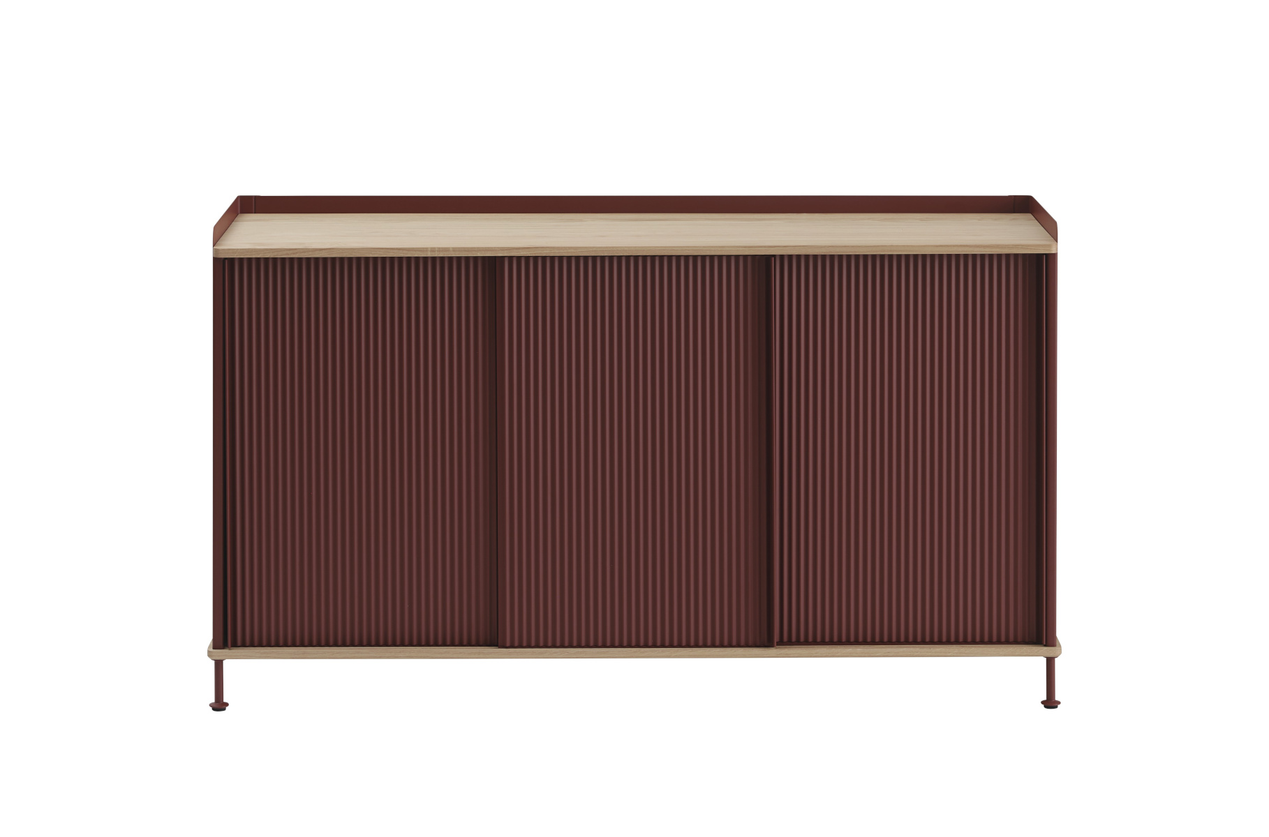 Das Enfold Sideboard wurde von Thomas Bentzen für Muuto entworfen und misst 148 cm in der Breite sowie 85 cm in der Höhe. Die Fronten und Seitenteile bestehen aus pulverbeschichtetem Stahl, während die Deckplatte und der Sockel aus massivem Eichenholz gefertigt sind. In mehreren eleganten Farbvarianten erhältlich, ermöglicht das Sideboard flexible Lösungen für unterschiedliche Einrichtungsanforderungen und Raumkonzepte.