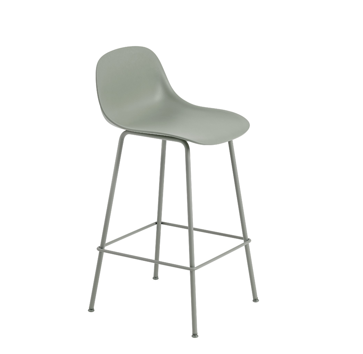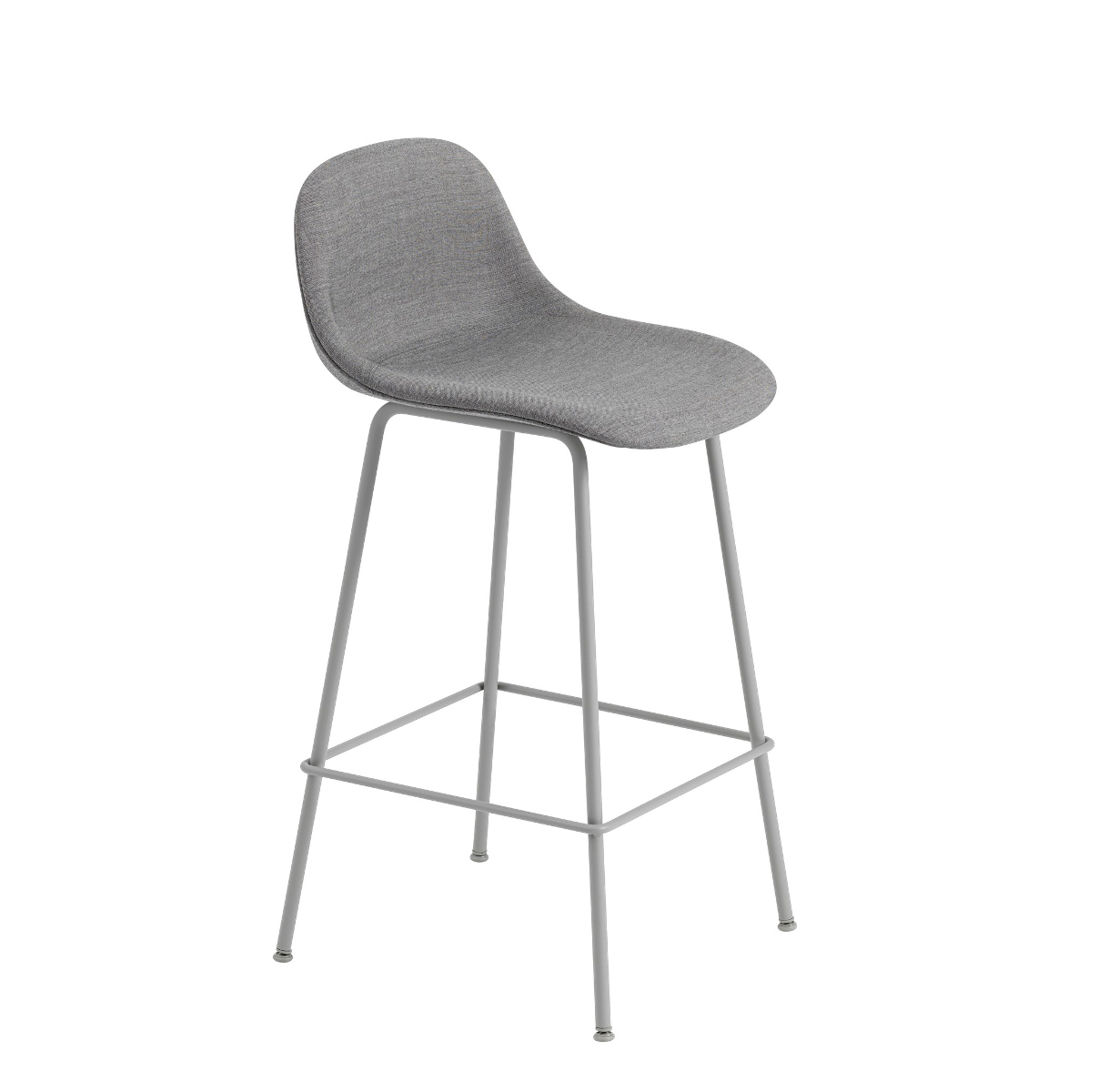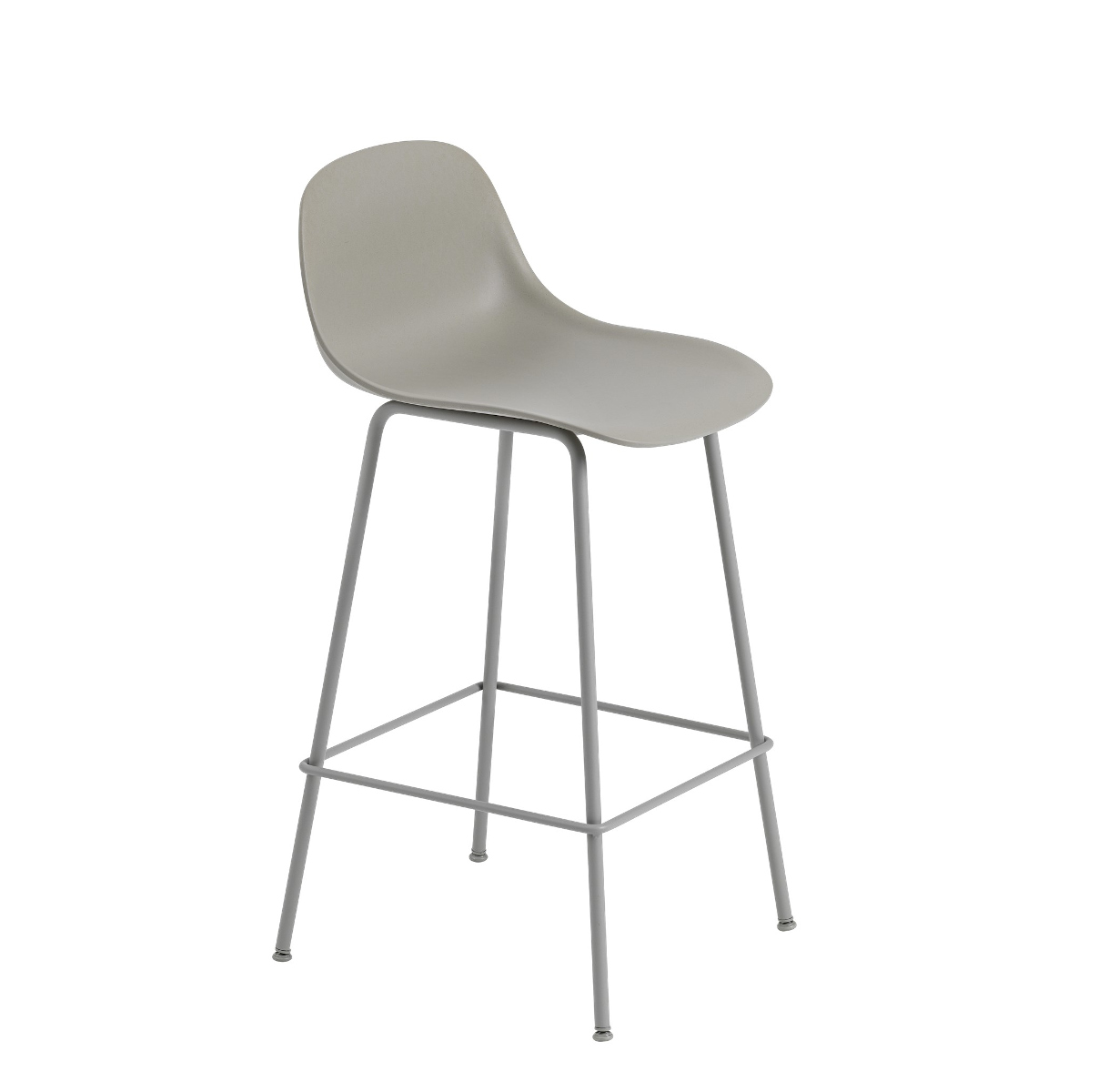 Muuto - Fiber Barhocker mit Rückenlehne, tube base, höhe 65 cm, grau / grau