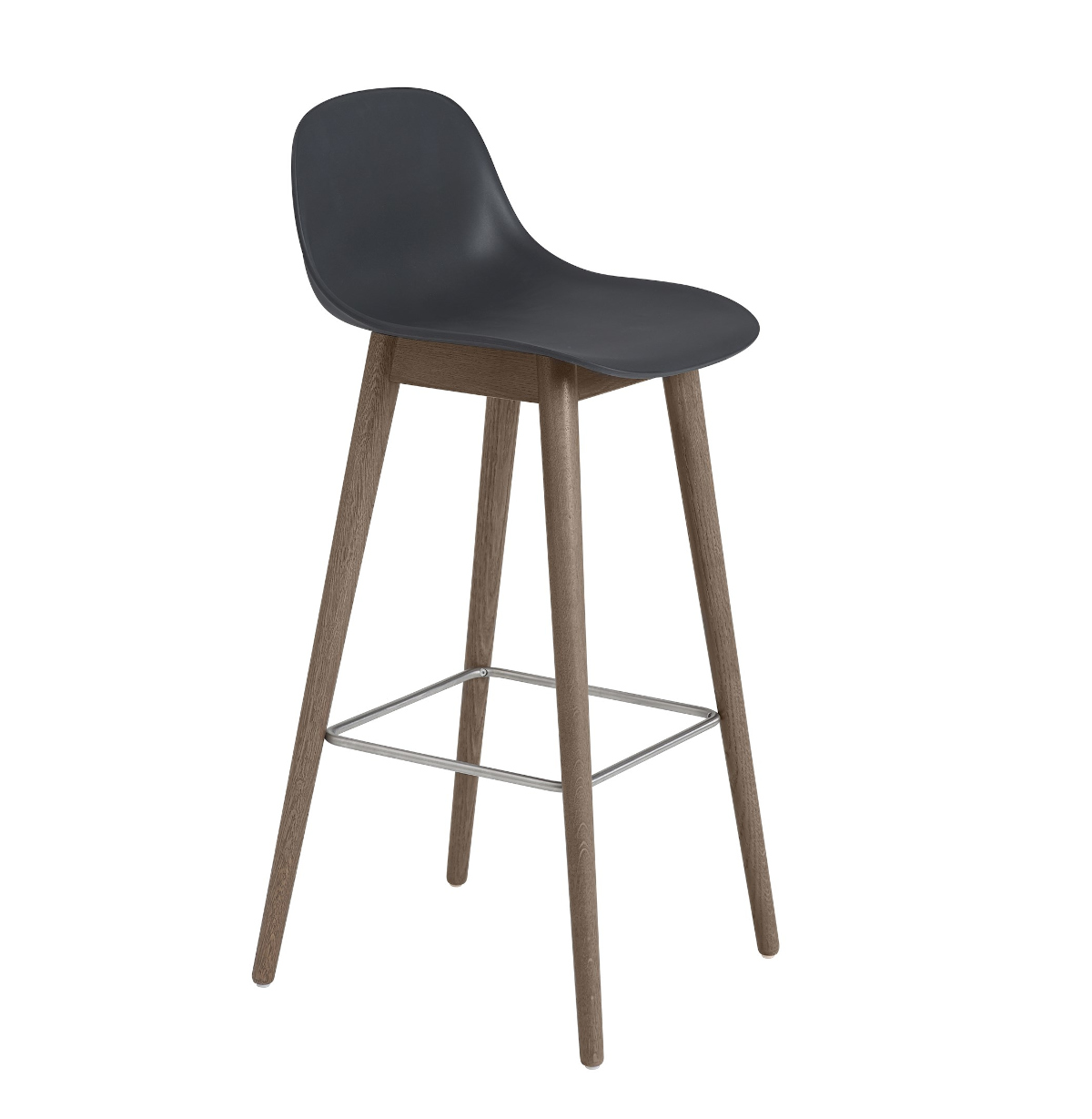 Muuto - Fiber Barhocker mit Rückenlehne, wood base, höhe 75 cm, twill weave 990 / dunkelbraun gebeizt