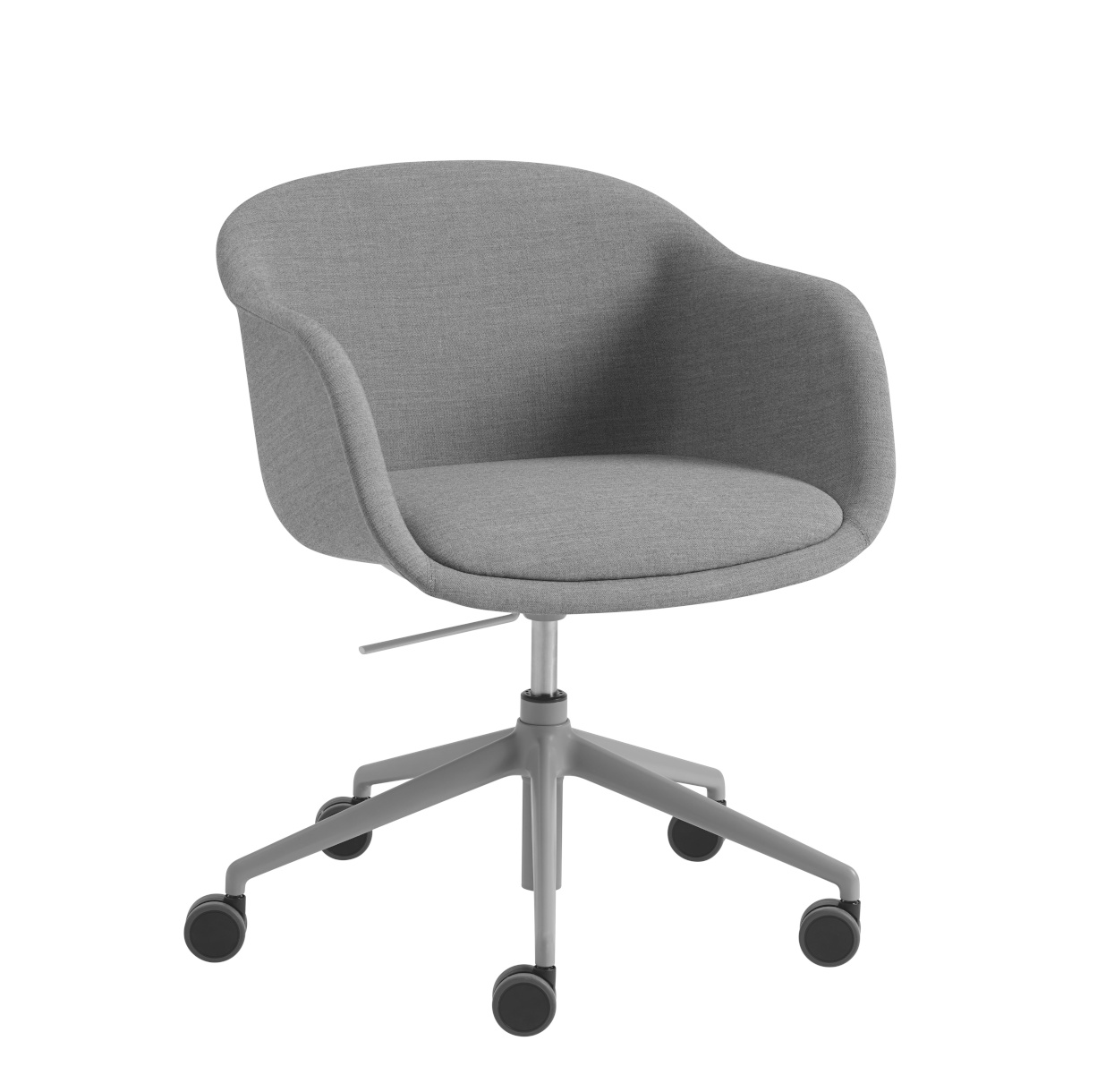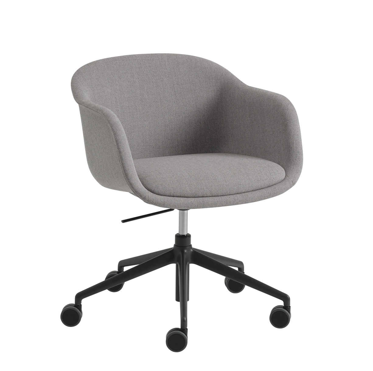 Muuto - Fiber Conference Armchair, swivel base mit Rollen, re-wool 108 / schwarz