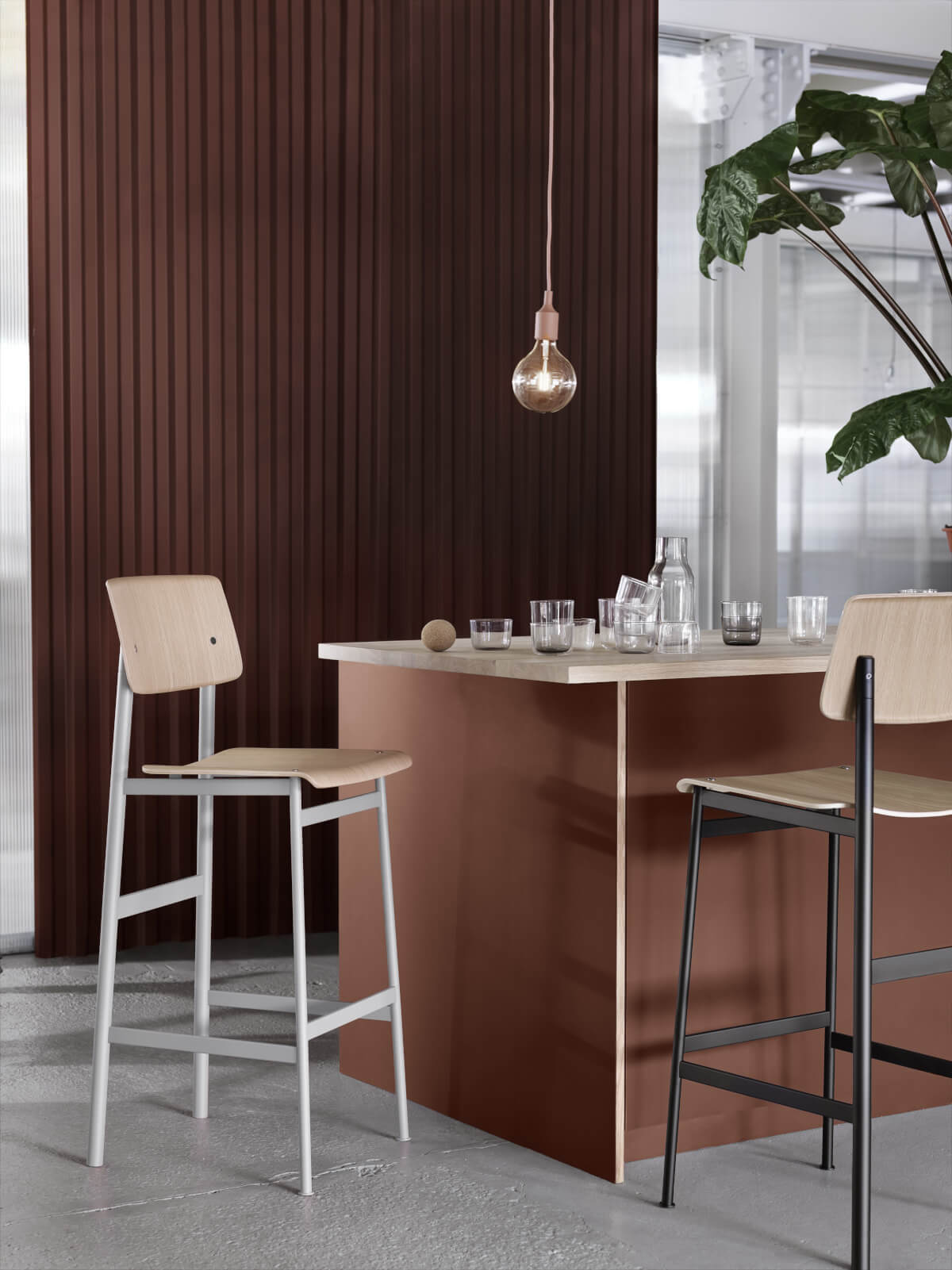 Mit einer Sitzhöhe von 75 cm unterstützt der Muuto Loft Barhocker optimale Haltung – ideal für Tresen, Counter oder Hochtische. Das Gestell aus pulverbeschichtetem Stahl sorgt für Stabilität, während die bequeme Sitzfläche aus geformtem Eichenfurnier ein angenehmes Sitzgefühl garantiert. Entworfen von Thomas Bentzen, ist der Loft Barhocker in verschiedenen Farbkombinationen erhältlich, die jedem Raum individuellen Charakter verleihen.