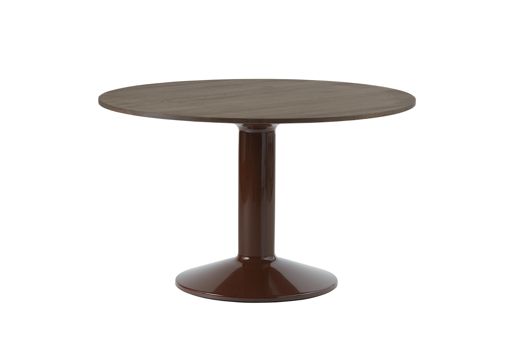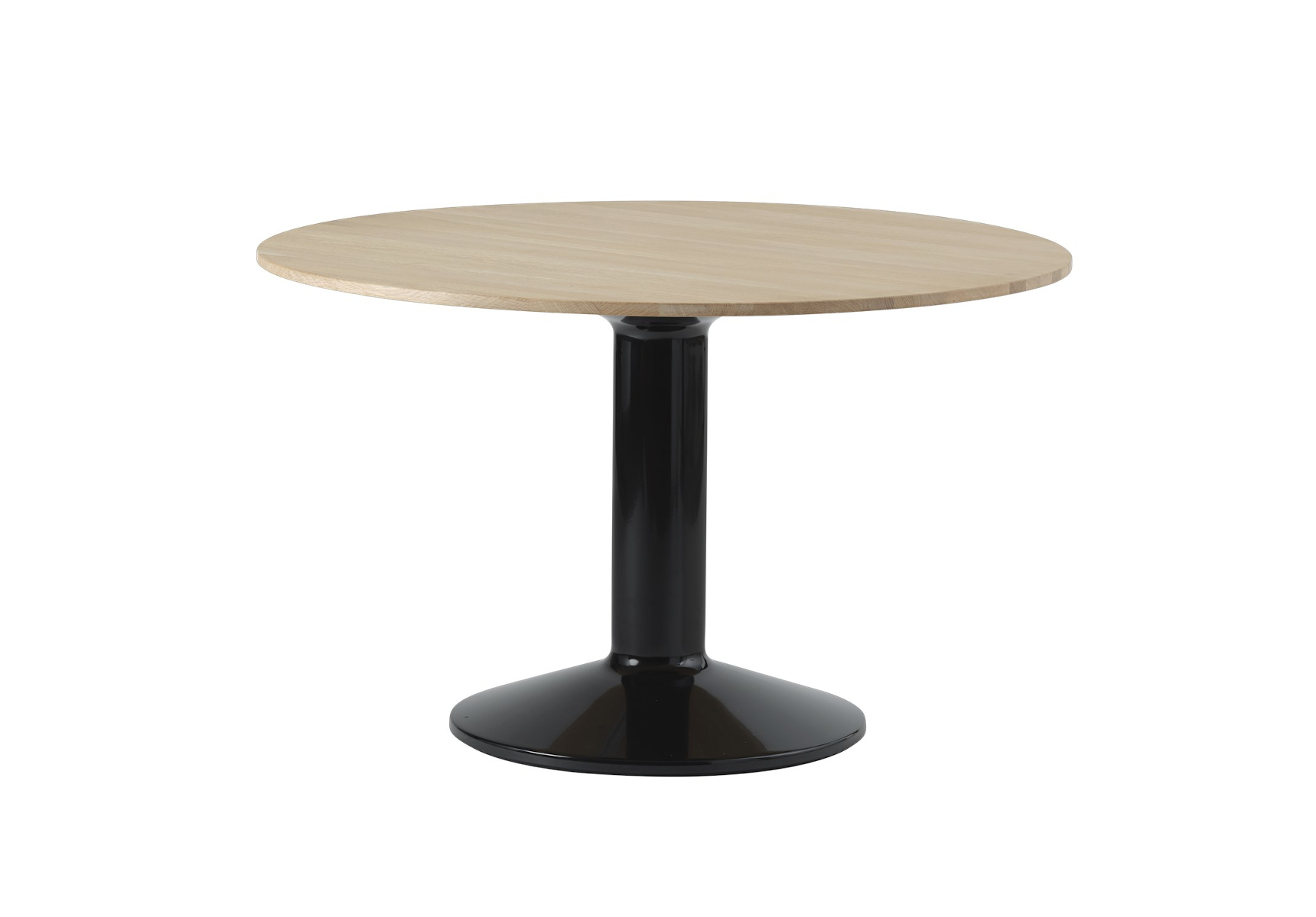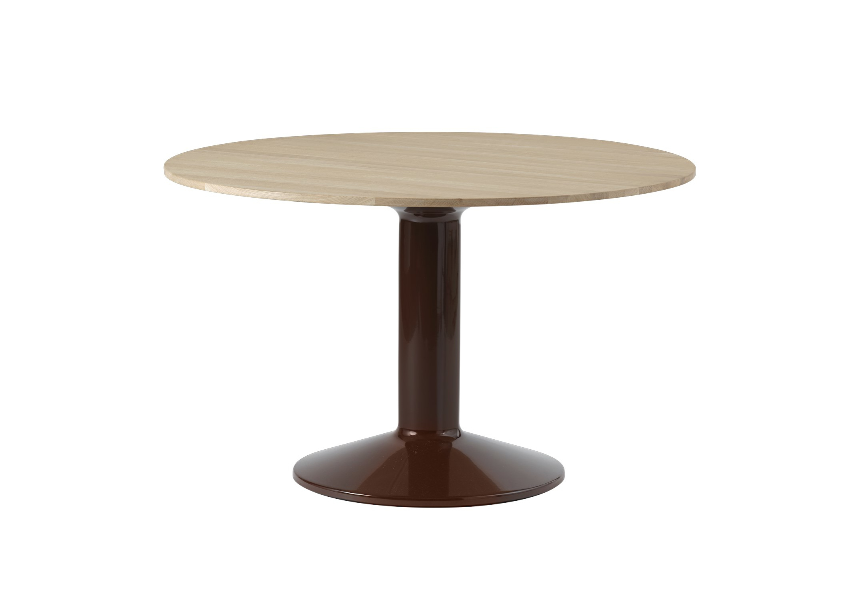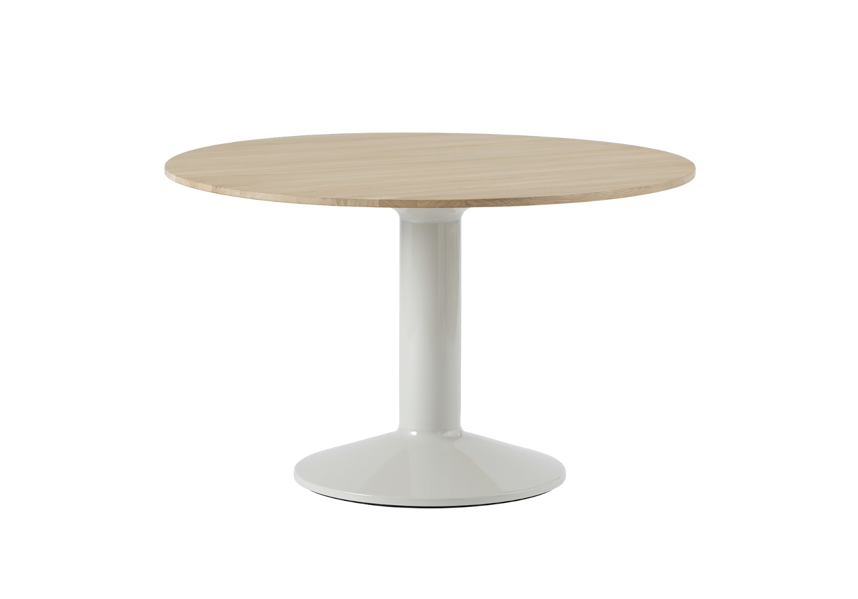 Der Entwurf stammt von TAF Studio, das für seine klare Formgebung und Präzision im Detail bekannt ist. Das Gestell aus pulverbeschichtetem Stahl trägt eine hochwertig verarbeitete Tischplatte, wahlweise aus lackiertem MDF oder edlem Eichenfurnier. Der Durchmesser von Ø 120 cm bietet ausreichend Platz für mehrere Personen und unterstützt unterschiedlichste Nutzungskonzepte. Erhältlich ist der Tisch in klassischen Farbnuancen, abgestimmt auf moderne Interieurs.
