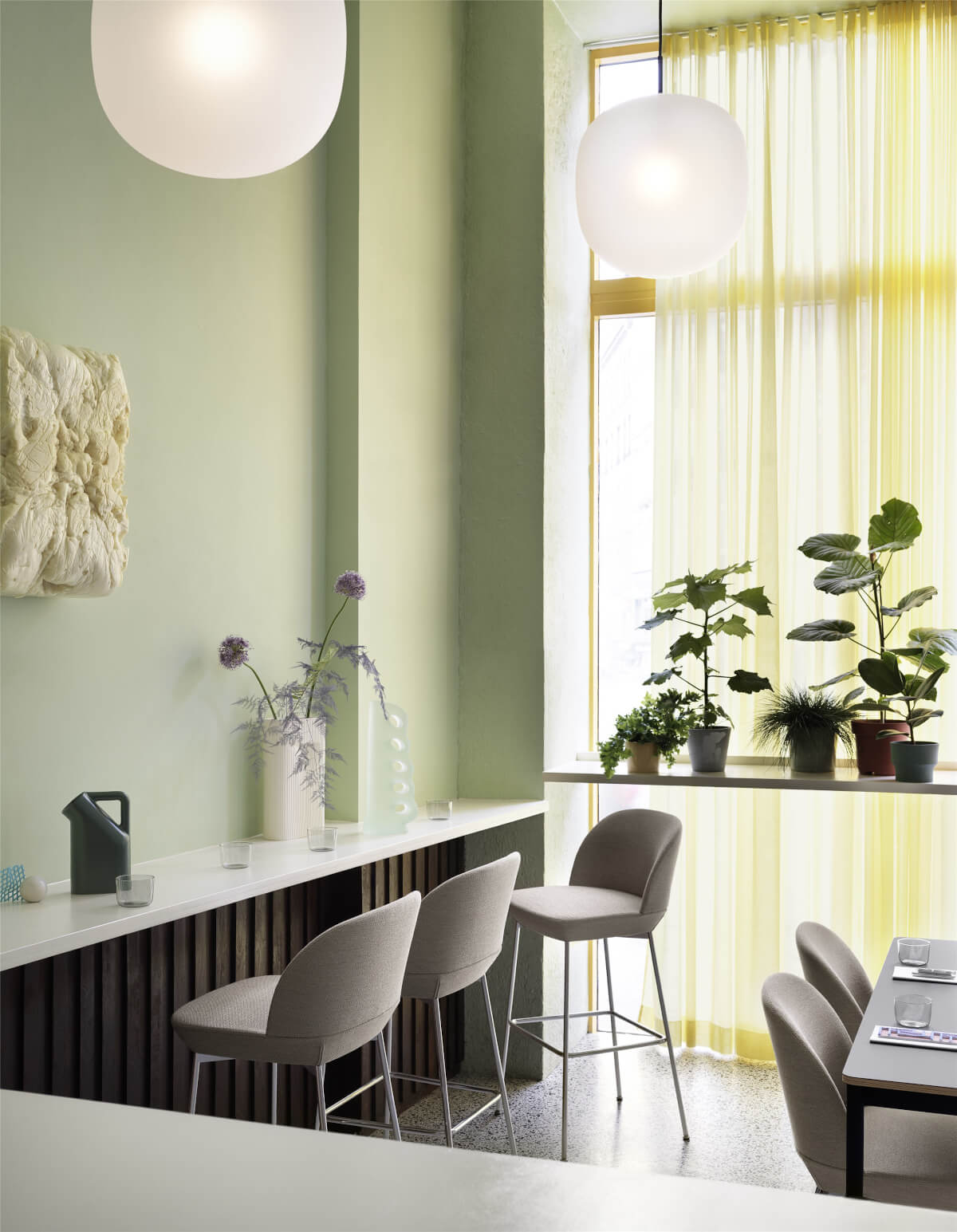 Der Oslo Barhocker von Muuto entfaltet ein harmonisches Zusammenspiel aus Leichtigkeit und funktionaler Raffinesse. Inspiriert vom klaren skandinavischen Designverständnis, vereint diese Sitzgelegenheit zurückhaltende Eleganz mit ganzheitlichem Komfort. Die klar konturierte Silhouette des Barhockers bereichert luxuriös gestaltete Kücheninseln, hochwertige Wohnbereiche oder exklusive Business-Lounges mit einem dezenten, aber präsenten Akzent. Die filigrane Linienführung des Sitzes wird durch eine weiche Polsterung und edle Materialien veredelt, sodass eine subtile Balance zwischen Erscheinung und Alltagstauglichkeit entsteht. Materialität und Form fügen sich nahtlos in anspruchsvolle Interieurs ein und betonen den Anspruch an ästhetische Stringenz, während hochwertige Verarbeitung Beständigkeit und Wertigkeit vermittelt. Ein filigran gearbeitetes, pulverbeschichtetes Untergestell trägt die großzügig geformte und angenehm gepolsterte Sitzfläche. Der Oslo Barhocker verfügt über eine Sitzhöhe von 65 cm und wird aus formstabilen Holzplatten, Schaumstoff und exklusiven Kvadrat-Stoffen gefertigt. Entworfen von Anderssen & Voll, steht das Modell in verschiedenen Farbvarianten zur Verfügung und harmoniert mit zahlreichen Einrichtungsstilen.Oslo Barhocker – Exquisite Verarbeitung und Variationsreichtum