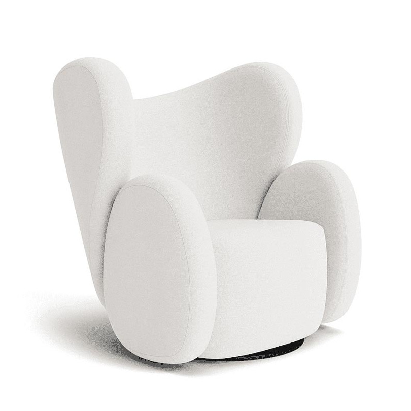 Der Big Big Chair präsentiert sich mit einer Gesamtbreite von 112 cm, einer Tiefe von 93 cm und einer Sitzhöhe von 41 cm. Hochwertige Schaumstoffpolsterung trifft auf einen massiven Korpus in verschiedenen exklusiven Stoff- und Lederbezügen, wahlweise in gedeckten oder expressiven Farben verfügbar. Das drehbare Untergestell verleiht zusätzliche Flexibilität. Entworfen wurde das Modell von Kristian Sofus Hansen & Tommy Hyldahl. Ergänzend sind passende Hocker und Varianten erhältlich.