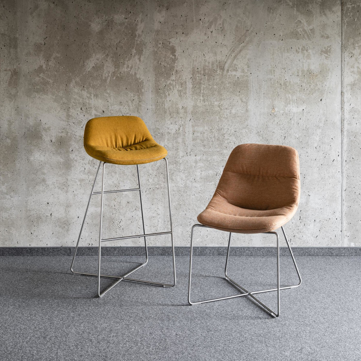| Material: | Gestell: Gekreuzte Kufen, Fußkreuz — aus Edelstahl oder lackiert; gebogenes Rohrprofil, Sitz: Polyurethanschaum, Füllung: Mischung aus Silikonfasern und Polyurethanschaum |