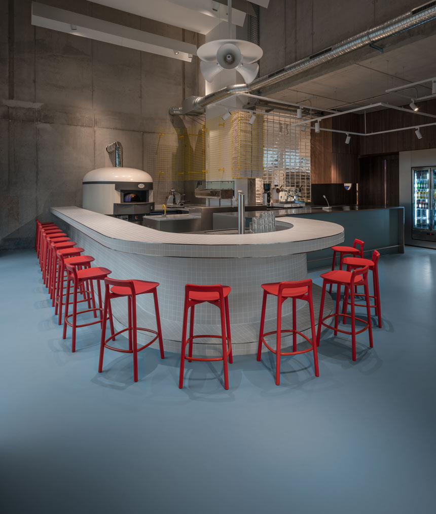 Die Bistrotische von Pedrali stehen für Nachhaltigkeit, Langlebigkeit und modernes Design. Sie passen perfekt zur Atmosphäre und dem Stil der Pizzeria Rimini. Mit ihrer hochwertigen Verarbeitung und ihrer zeitlosen Ästhetik bieten sie eine visuell ansprechende Ergänzung zum gastronomischen Ambiente.