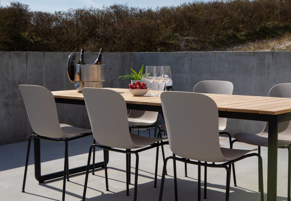 | Details: | Der SACKit Patio Esstisch vereint elegantes dänisches Design mit robusten Materialien. Leichtes Aluminium, warme Teakholz-Tischplatte, wetterfest und perfekt für Familie & Freunde. |