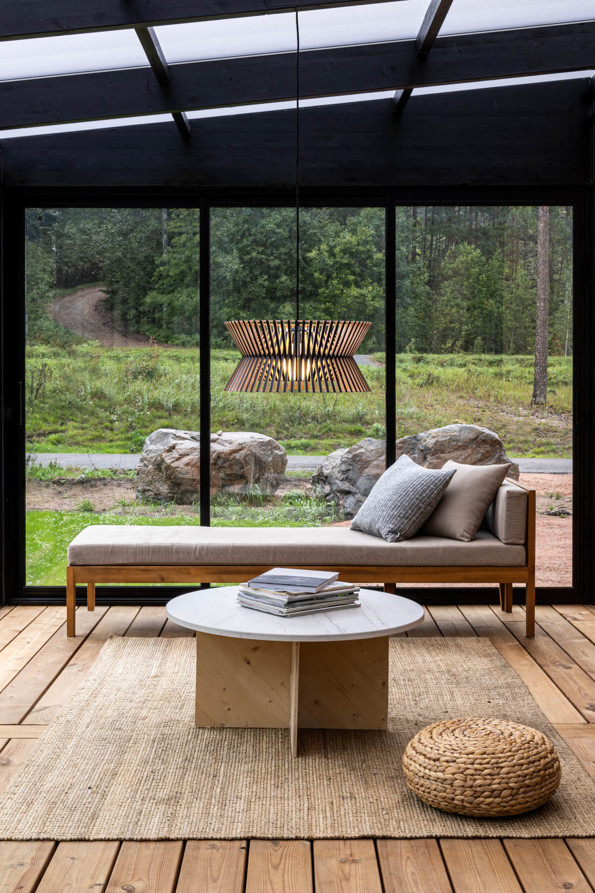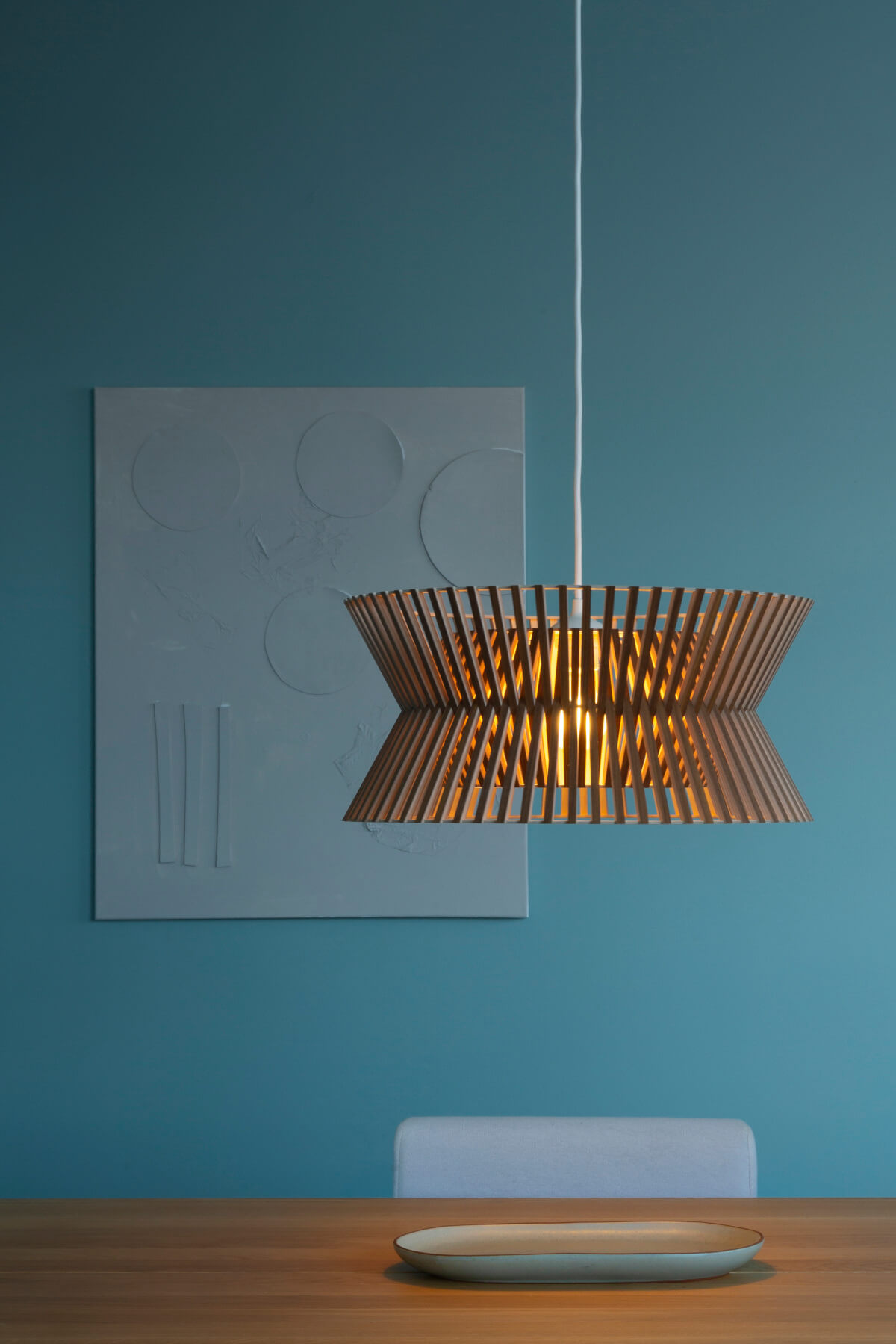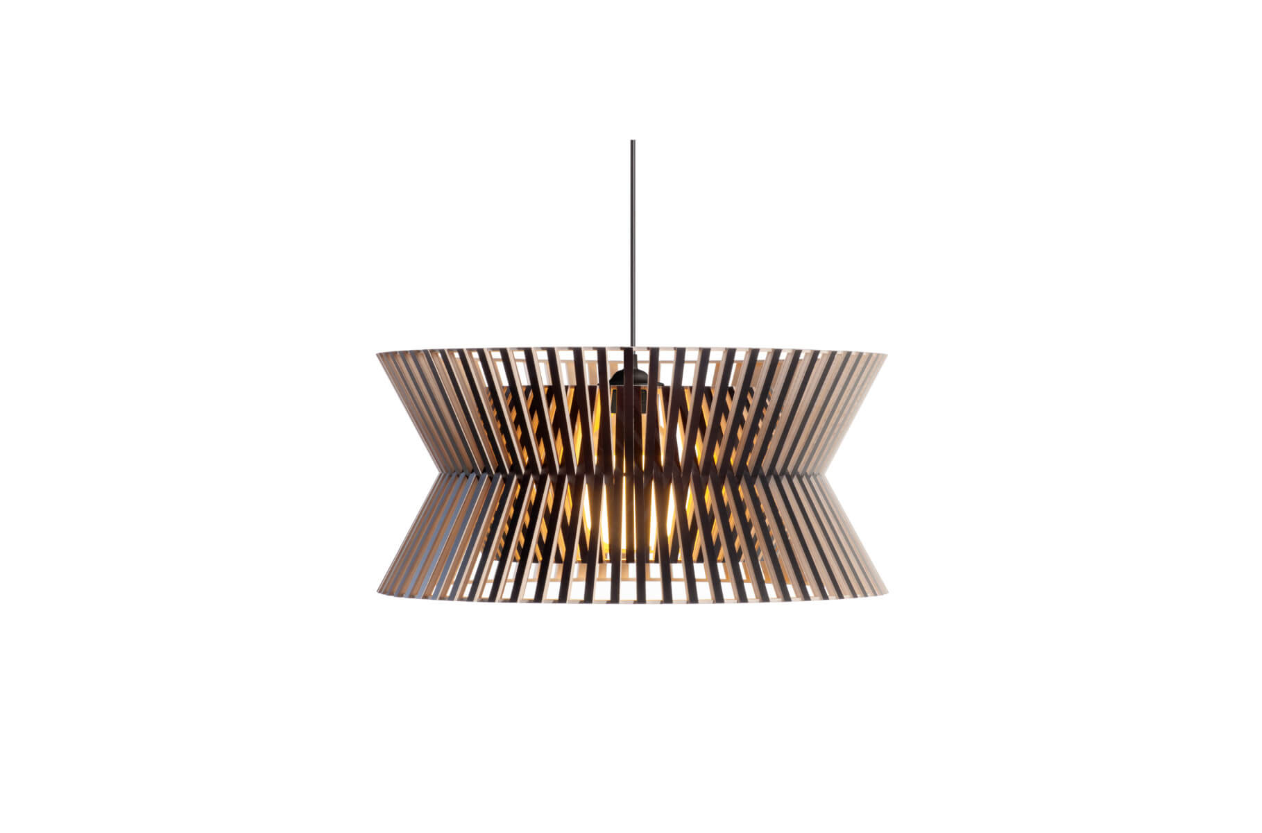Die Secto Design Kontro 6000 Pendelleuchte steht exemplarisch für den hohen Designanspruch und die einzigartige Lichtwirkung moderner skandinavischer Formgebung. Schwebend entfaltet die Leuchte im Raum eine ausdrucksstarke Präsenz, kombiniert mit weicher, atmosphärischer Lichtverteilung. Präzise gefertigte Lamellen aus finnischem Birkenholz erzeugen ein faszinierendes Wechselspiel von Licht und Schatten, das jeden Raum mit zurückhaltender Eleganz erfüllt. Die Pendelleuchte bietet eine harmonische Balance aus dekorativem Blickfang und funktionaler Lichtquelle. In exklusiven Interieurs sorgt das Leuchtobjekt für eine Aufwertung des Ambientes, wo Raum und Licht in einen ästhetischen Dialog treten. Wie ein skulpturales Statement integriert sich die Secto Design Kontro 6000 Pendelleuchte nahtlos in anspruchsvolle Wohn- und Arbeitsumgebungen von niveauvollen Privat- oder Geschäftskunden. Mit einem Durchmesser von 45 Zentimetern und einer Höhe von 21 Zentimetern wird die Pendelleuchte aus PEFC-zertifiziertem, formverleimtem Birkenholz gefertigt. Zur Auswahl stehen vier Oberflächenvarianten: natur, weiß laminiert, schwarz laminiert sowie Walnussfurnier. Entworfen wurde die Kontro 6000 von Seppo Koho, dem renommierten Designer, der für seine klare, zeitlose Handschrift bekannt ist.Kontro 6000 Pendelleuchte – Natürliche Materialien, markantes Design