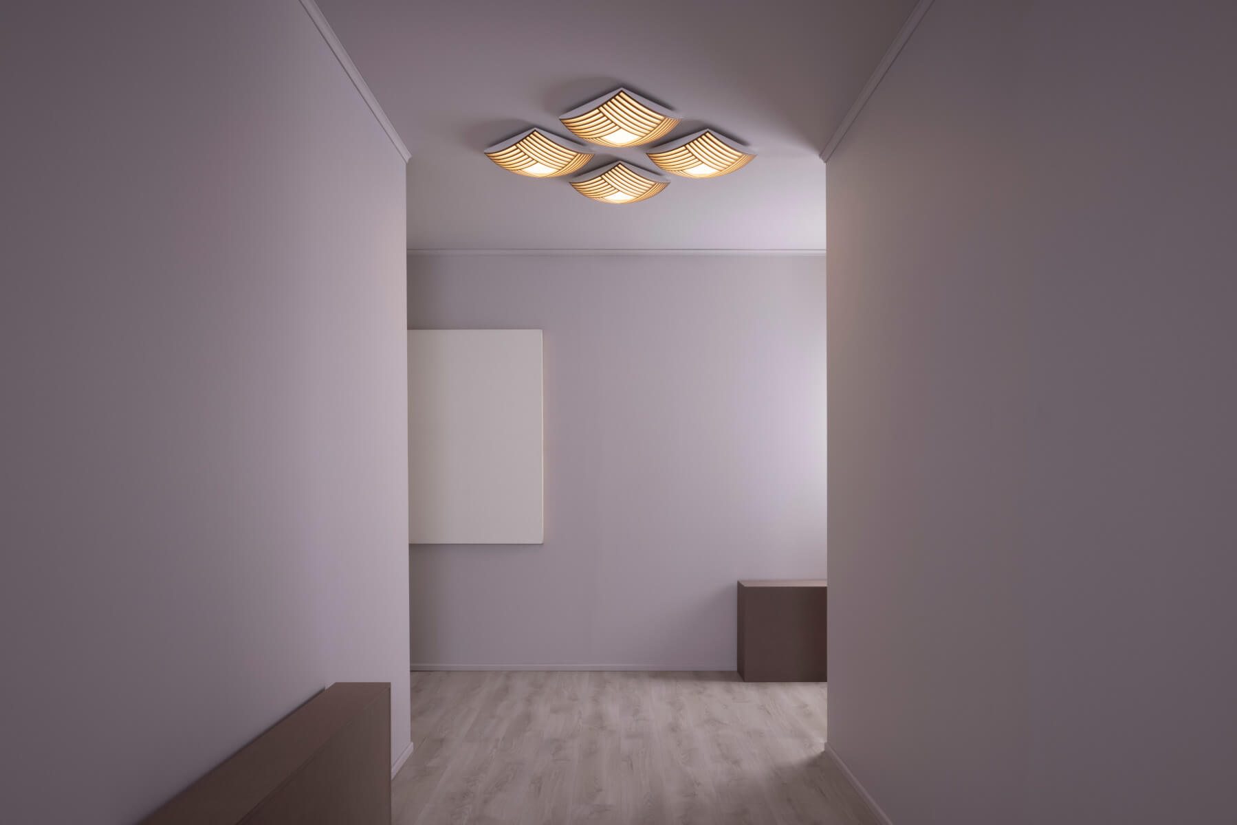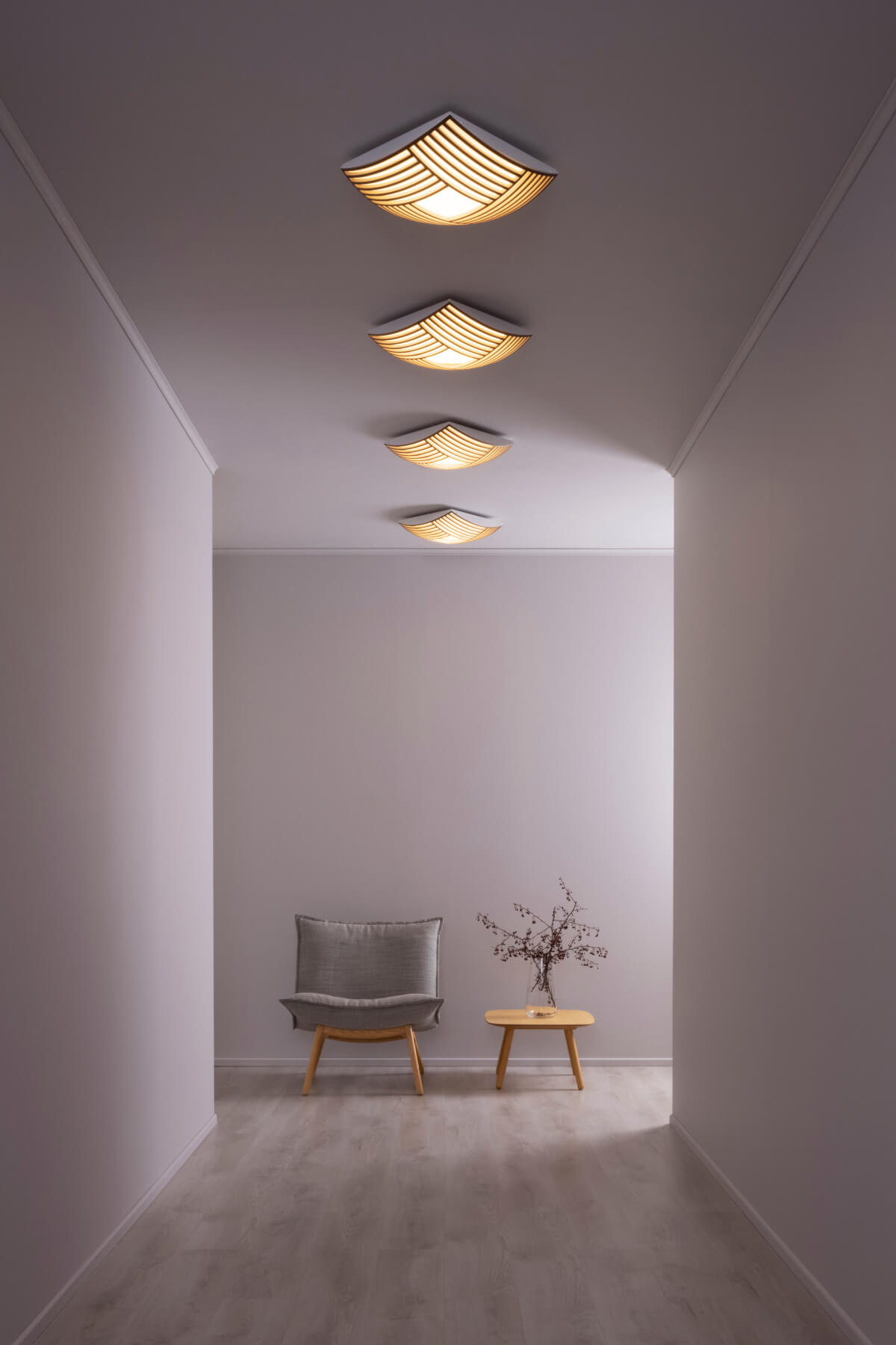 Die Secto Design Kuulto 9101 LED Deckenleuchte präsentiert sich als eindrucksvolle Symbiose aus zeitloser Ästhetik und technischer Präzision. Sanftes, diffuses Licht durchflutet den Raum, während die feine Holzstruktur der Lampe eine angenehm warme Atmosphäre schafft. Die minimalistische Formensprache und das charakteristische Muster der Lamellen betonen den skandinavischen Gestaltungsansatz, der auf Zurückhaltung und Authentizität setzt. Unaufdringlich, aber dennoch präsent, inszeniert die Deckenleuchte Deckenflächen als architektonisches Element und verleiht sowohl Wohn- als auch Arbeitsbereichen einen dezenten, natürlichen Akzent. Das harmonische Zusammenspiel von Licht und Material steht im Mittelpunkt, wodurch die Kuulto 9101 LED Deckenleuchte über ihre rein funktionale Aufgabe hinaus zu einem wirkungsvollen Statement moderner Lichtgestaltung avanciert. Die Kuulto 9101 LED Deckenleuchte misst 52 auf 52 Zentimeter, die Höhe beträgt 13 Zentimeter. Ihr Korpus besteht aus hochwertigem, formverleimtem Birkenholz, erhältlich in Natur, Walnuss, Schwarz oder Weiß laminiert. Für das Design zeichnet Seppo Koho verantwortlich. Die integrierte LED-Technik garantiert energieeffiziente, langlebige Lichtleistung und eine harmonische Lichtfarbe. Wahlweise ist die Leuchte dimmbar erhältlich.Kuulto 9101 LED Deckenleuchte – Meisterhaft verarbeitetes Holz und filigrane Lichtkunst