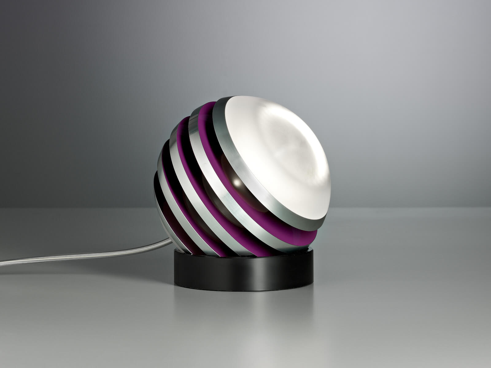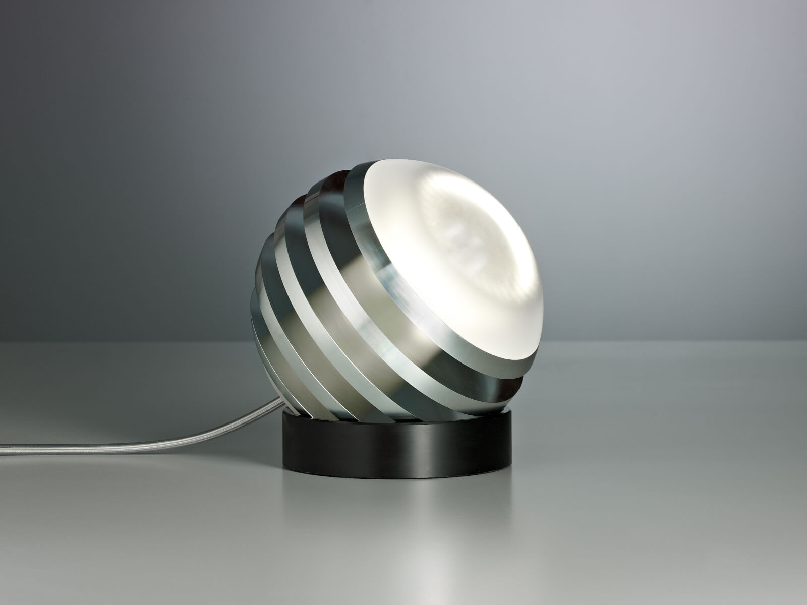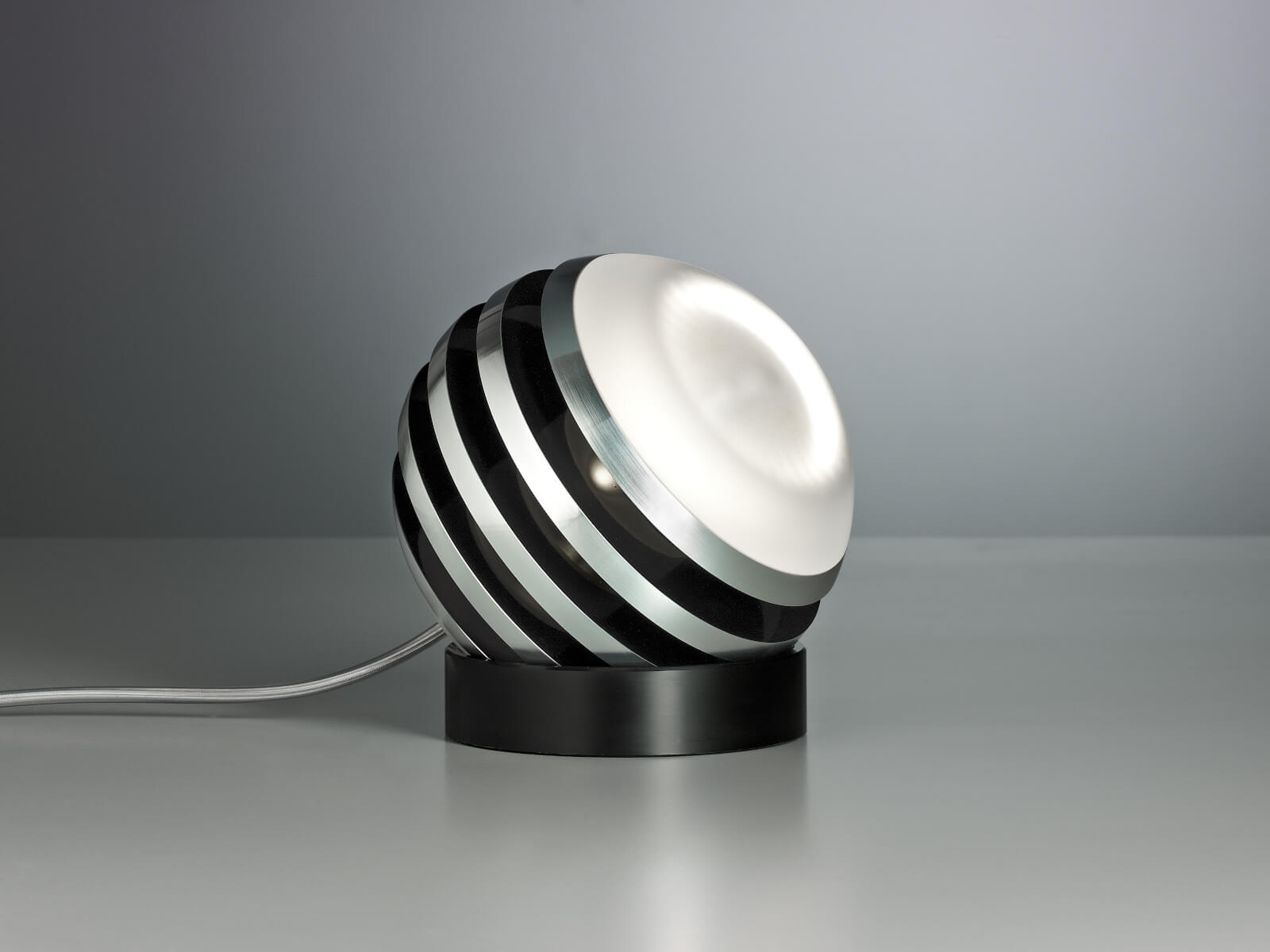 | Details: | Bulo - so heißt die kugelrunde Leuchte. Ihr Schöpfer ist der vielfach ausgezeichnete Designer Oliver Niewiadomski. Die Aluminiumlamellen sind in gleichem Abstand angeordnet und lassen in den Zwischenräumen den Zylinder aus satiniertem Glas durchscheinen, in dem sich die LED befindet. Der Clou: Die Leuchte kann auf dem Kunststoff-Fußring frei bewegt und damit beliebig positioniert werden. |