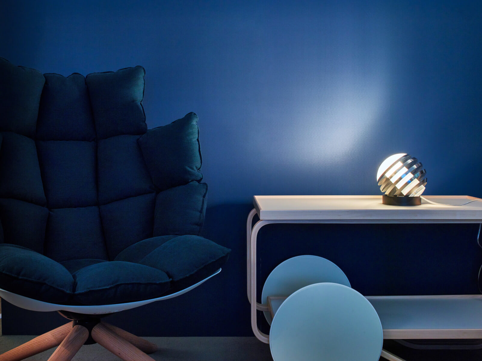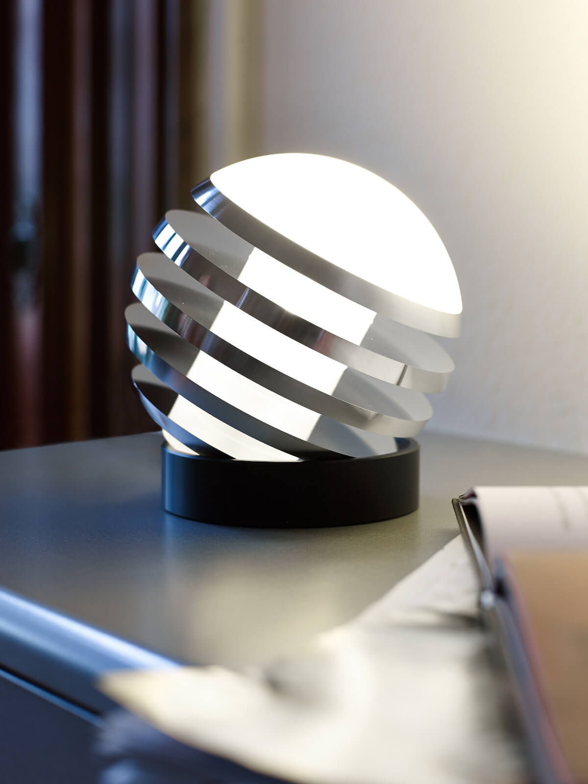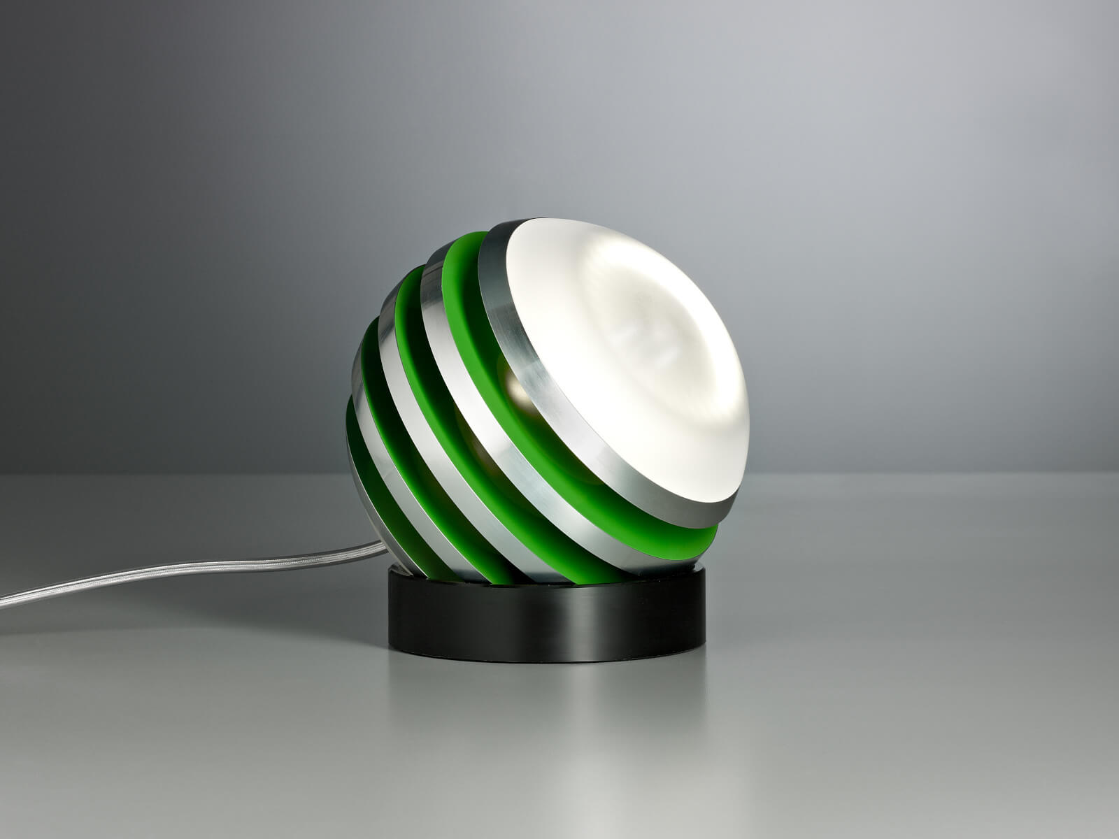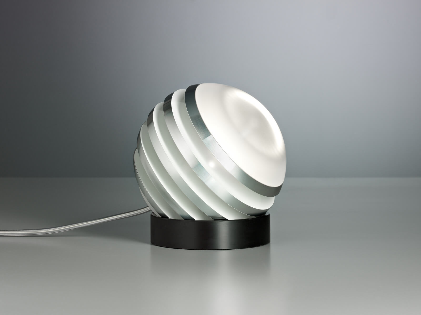 | Details: | Bulo - so heißt die kugelrunde Leuchte. Ihr Schöpfer ist der vielfach ausgezeichnete Designer Oliver Niewiadomski. Die Aluminiumlamellen sind in gleichem Abstand angeordnet und lassen in den Zwischenräumen den Zylinder aus satiniertem Glas durchscheinen, in dem sich die LED befindet. Der Clou: Die Leuchte kann auf dem Kunststoff-Fußring frei bewegt und damit beliebig positioniert werden. |