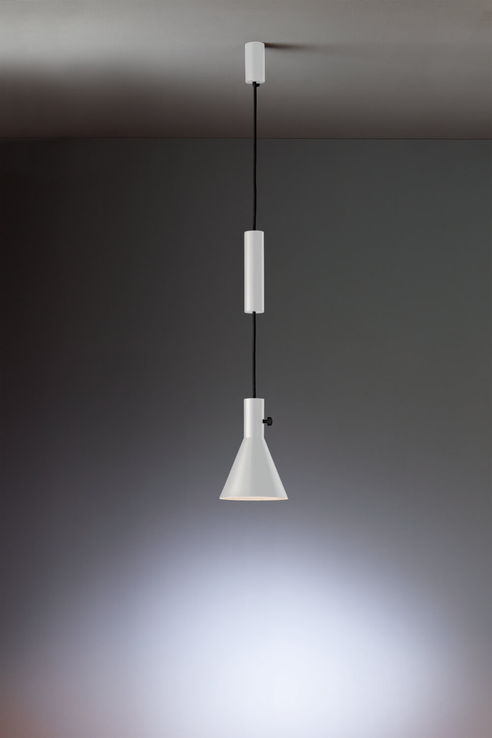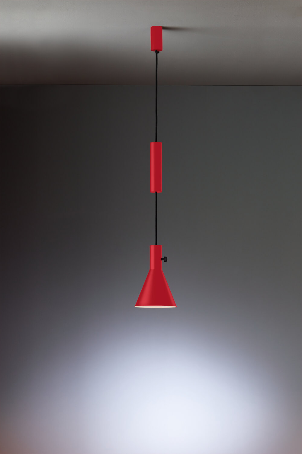 Typisch für Produkte aus dem Bremer Leuchtenhaus Tecnolumen ist die schlichte Form, die sich in fast jedem Einrichtungsstil mühelos integrieren lässt. Dazu ist die Pendelleuchte in starken Farben, wie grau, rot, schwarz lackiert, schwarz matt und weiß, erhältlich, was die Wahl nicht leichter macht.