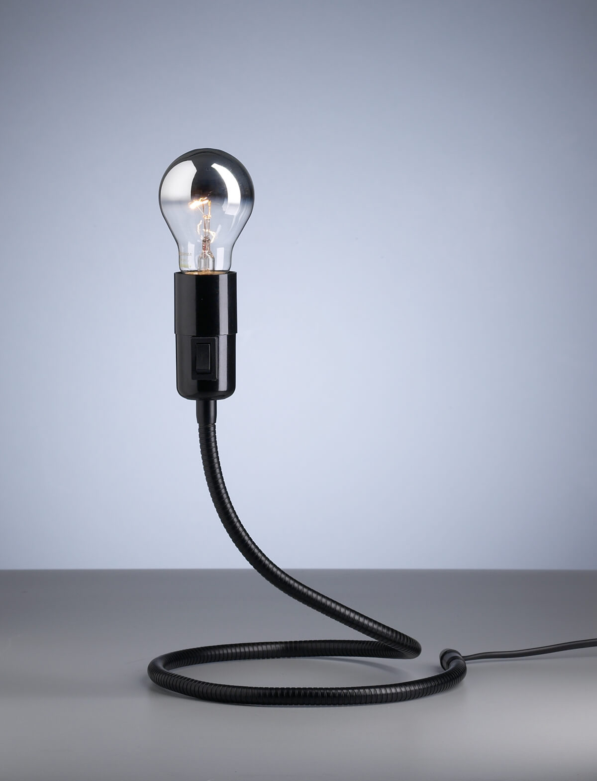 | Hinweis: | Den „Lightworm” bieten wir mit scharzem und vernickeltem Metallfuß an. Darauf abgestimmt ist die Zuleitung schwarz oder transparent. |