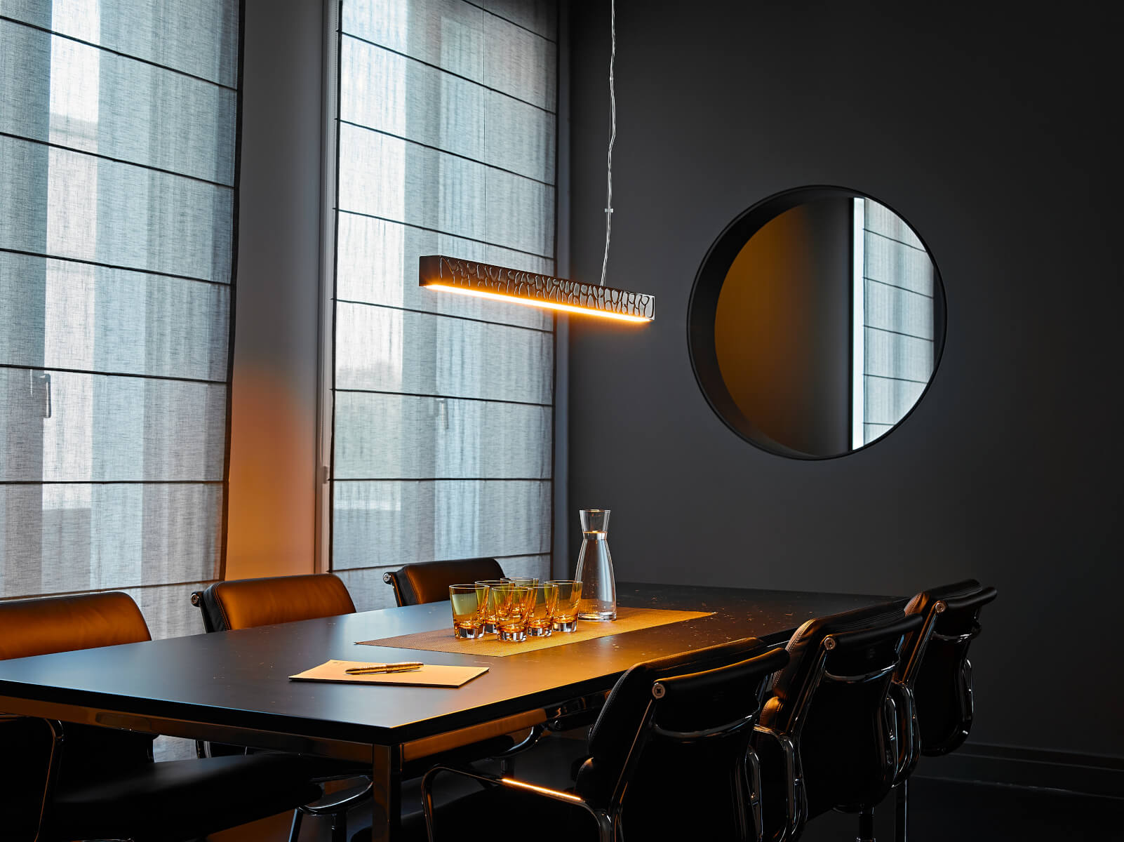 Besser kann man Lichtverhältnisse nicht an Situationen anpassen. Dim to warm ist die absolute Innovation auf dem Gebiet für dimmbare Leuchtkraft. Über einen externen Phasenabschnittdimmer schalten Sie die Theia Pendelleuchte ein und aus. Ebenso wird hier die Helligkeitsregulierung vorgenommen.Regulieren Sie die Intensität der Theia Pendelleuchte für perfektes Ausleuchten des Arbeitsplatzes auf die volle beziehungsweise gewünschte Farbtemperatur.