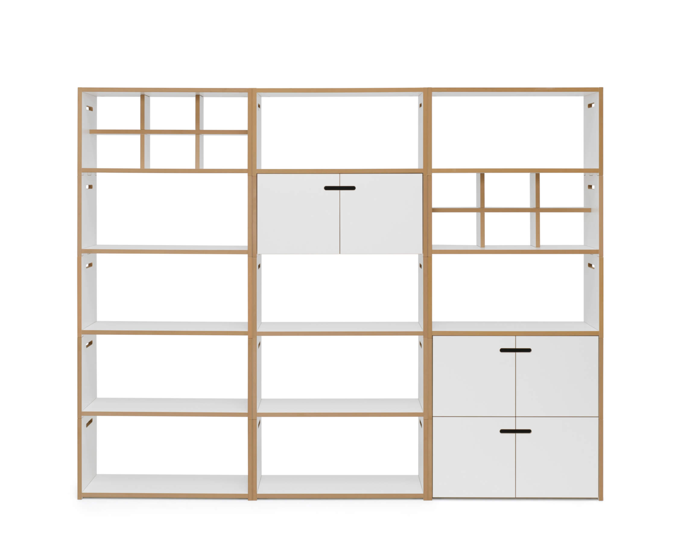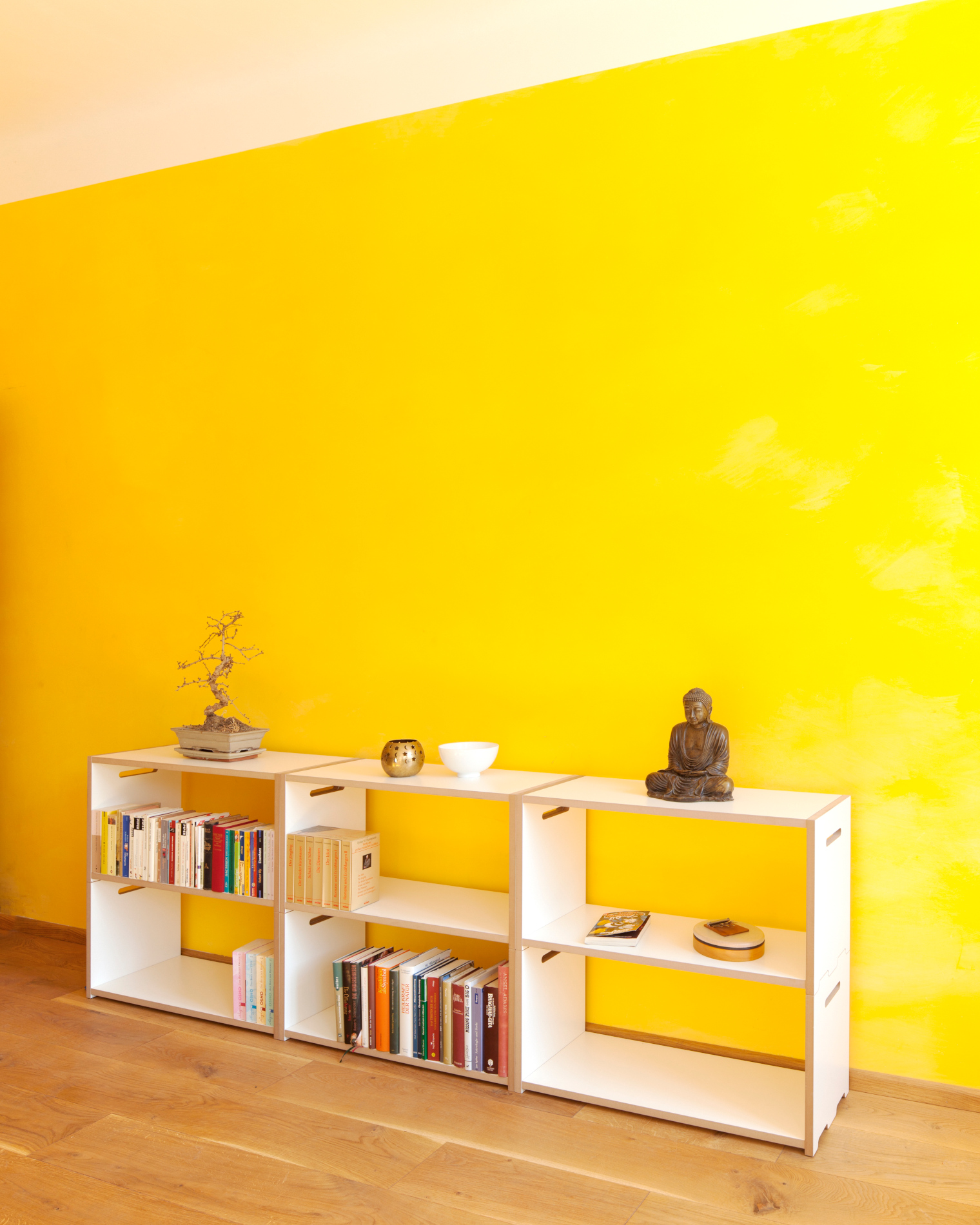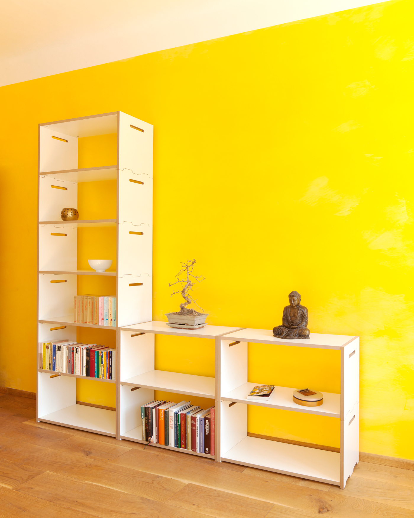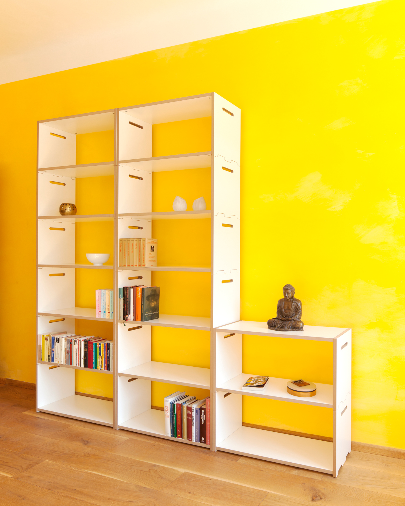 | Details: | Tojo-Hochstapler ist ein freistehendes, horizontal und vertikal beliebig erweiterbares Regalsystem. |