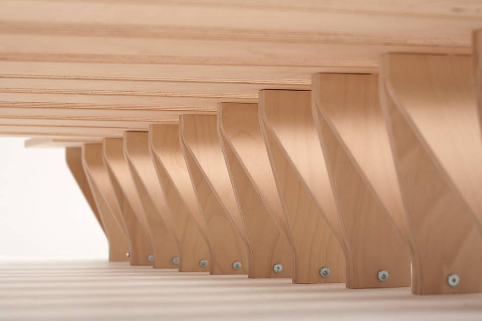 | Material: | Latten: Buche Multiplex, unbehandelt, Füße: Buche Multiplex, unbehandelt |
